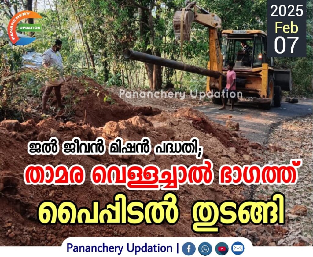 ജൽ ജീവൻ മിഷൻ പദ്ധതി; താമര വെള്ളച്ചാൽ ഭാഗത്ത് പൈപ്പിടൽ തുടങ്ങി