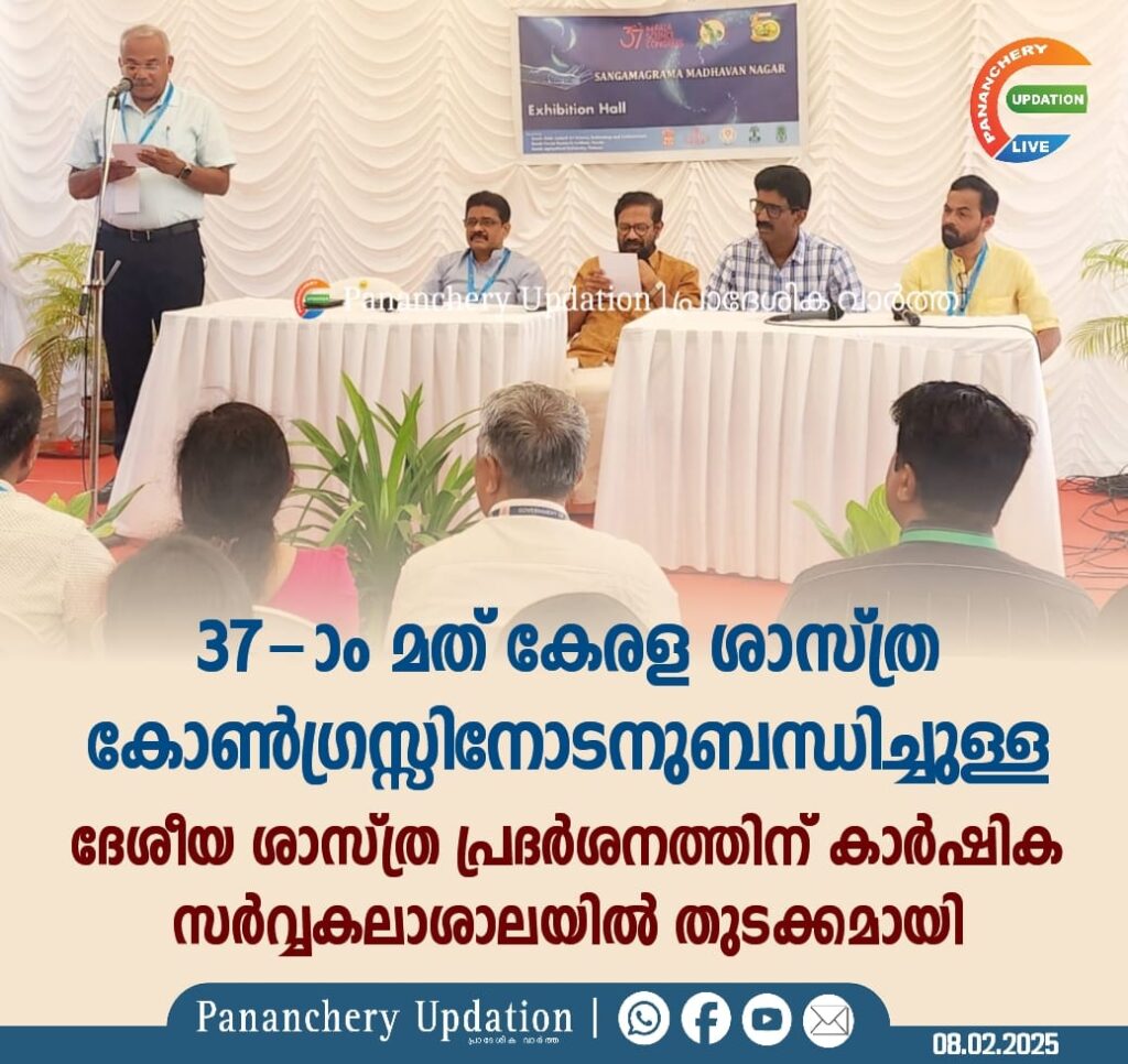 37-ാം മത് കേരള ശാസ്ത്ര കോൺഗ്രസ്സിനോടനുബന്ധിച്ചുള്ള ശാസ്ത്ര പ്രദർശനത്തിന് കാർഷിക സർവ്വകലാശാലയിൽ തുടക്കമായി. ദേശീയ ശാസ്ത്രപ്രദർശനത്തിന്റെ ഉദ്ഘാടനം ത്യശ്ശൂർ ജില്ലാ പഞ്ചായത്ത് പ്രസിഡൻ്റ് വി.എസ്.പ്രിൻസ് നിർവഹിച്ചു. കാർഷിക സർവ്വകലാശാല രജിസ്ട്രാർ ഡോ. എ സക്കീർ ഹുസൈൻ അധ്യക്ഷത വഹിച്ച ചടങ്ങിൽ മാടക്കത്തറ പഞ്ചായത്ത് പ്രസിഡൻ്റ് ഇന്ദിര മോഹൻ, ജില്ലാ പഞ്ചായത്ത് അംഗം പി.എസ്. വിനയൻ എന്നിവർ ആശംസ അർപ്പിച്ചു സംസാരിച്ചു. ചടങ്ങിൽ കേരള ശാസ്ത്ര സാങ്കേതിക പരിസ്ഥിതി കൗൺസിൽ മെമ്പർ സെക്രട്ടറി പ്രൊഫ.എ.സാബു, പ്രദർശന കമ്മിറ്റി കൺവീനർ ഡോ.ബാലകൃഷ്ണൻ പി എന്നിവരും സംസാരിച്ചു.