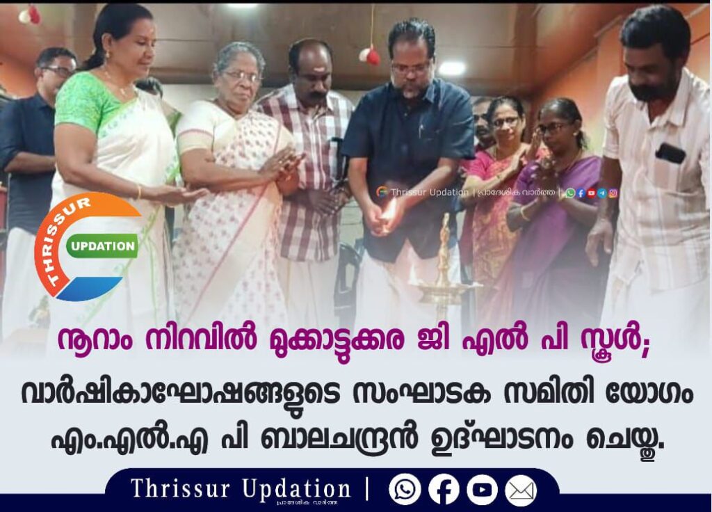 മുക്കാട്ടുക്കര ജി എൽ പി സ്കൂളിൻ്റെ ഒരു വർഷം നീണ്ടുനിൽക്കുന്ന നൂറാം വാർഷികാഘോഷങ്ങളുടെ സംഘാടക സമിതി ഡെപ്യൂട്ടി മേയർ എംഎൽ റോസിയുടെ അധ്യക്ഷതയിൽ എം എൽ എ പി ബാലചന്ദ്രൻ ഉദ്ഘാടനം ചെയ്തു. സ്മരണിക, പുതിയ കെട്ടിടത്തിൻ്റെ ഉൽഘാടനം, സാംസ്കാരികൂട്ടായ്മ, അനുമോദനം, ആദരിക്കൽ, വിദ്യാഭ്യാസ, കലാകായിക പരിപാടികൾ തുടങ്ങിയ പദ്ധതികളുടെ രേഖ പ്രധാന അധ്യാപിക പി വി വനജ ടീച്ചർ കൗൺസിലർ ശ്യാമള മുരളീധരന് കൈമാറി, ഫെൻസി കെ ജോർജ് സ്വാഗതവും, രാമചന്ദ്രൻ പി,സതീഷ് ചന്ദ്രൻ, ഗോപാലകൃഷ്ണൻ വി, സന്തോഷ് കുമാർ എൻ ആർ ഗോപാലകൃഷ്ണൻ കെ, സുന്ദരരാജൻ മാഷ് എന്നിവർ സംസാരിച്ചു. വിപുലമായ സംഘാടക സമിതിക്ക് സുമതി ടീച്ചർ നന്ദി രേഖപ്പെടുത്തി.
