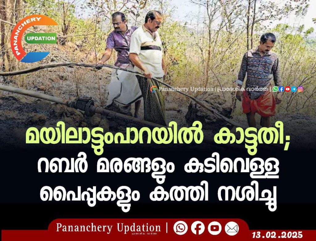 മയിലാട്ടുംപാറയിൽ കാട്ടുതീ; റബർ മരങ്ങളും കുടിവെള്ള പൈപ്പുകളും കത്തി നശിച്ചു