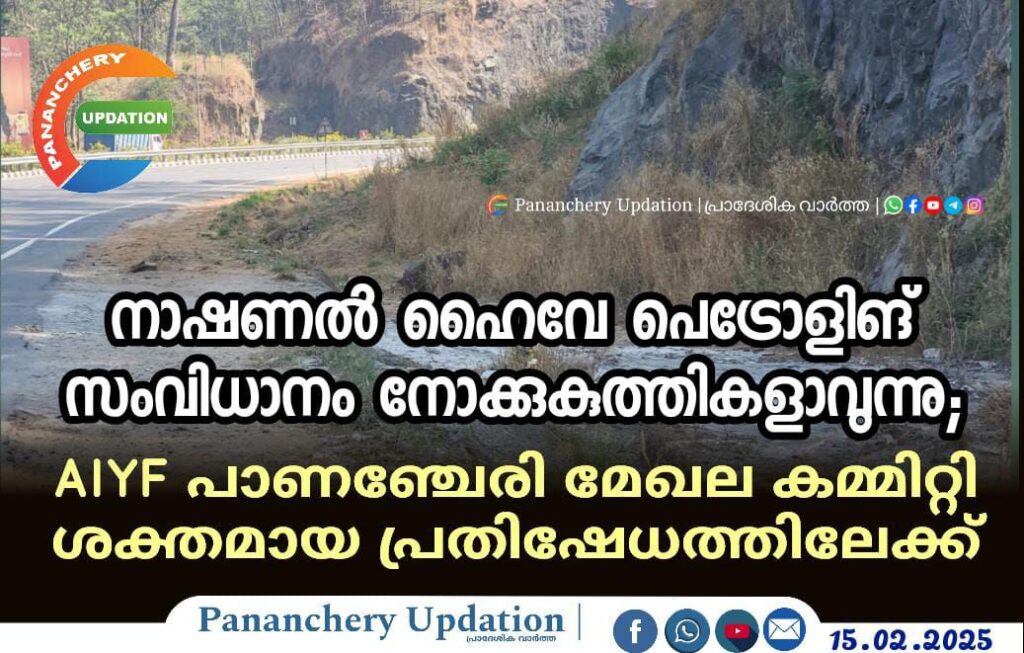 നാഷണൽ ഹൈവേ പെട്രോളിങ് സംവിധാനം നോക്കുകുത്തികളാവുന്നു; AIYF പാണഞ്ചേരി മേഖല കമ്മിറ്റി ശക്തമായ പ്രതിഷേധത്തിലേക്ക്