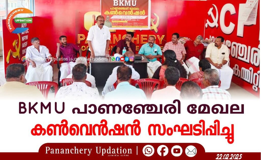 BKMU പാണഞ്ചേരി മേഖല കൺവെൻഷൻ CPI പാണഞ്ചേരി ലോക്കൽ കമ്മറ്റി ഓഫീസിൽ വച്ച് BKMU സംസ്ഥാന കമ്മറ്റി അംഗം സി സി മുകുന്ദൻ എംഎൽഎ ഉദ്ഘാടനം ചെയ്തു. പ്രദീപ് കുമാർ എം കെ അദ്ധ്യക്ഷനായ്