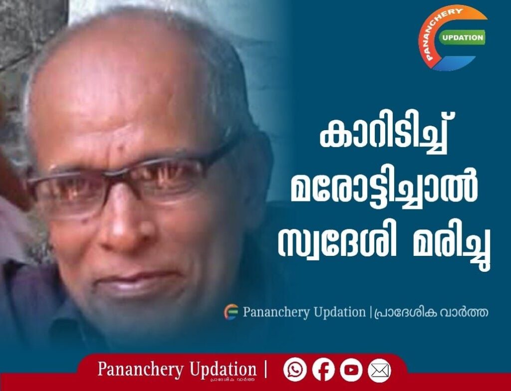 തലോരിൽ ദേശീയപാത മുറിച്ചുകടക്കുന്നതിനിടെ കാറിടിച്ച് കാൽനടയാത്രക്കാരൻ മരിച്ചു. മരോട്ടിച്ചാൽ സ്വദേശി വട്ടപ്പറമ്പിൽ ജോസഫ് (78) ആണ് മരിച്ചത്. ദേശീയപാത കുറുകെ കടക്കുന്നതിനിടെ കാർ ഇടിച്ചാണ് അപകടം. സംസ്കാരം പിന്നീട്. ഭാര്യ: തങ്കമ്മ. മക്കൾ: സുനില, അനില, സുനേഷ്, സുനിത, സുപ്രിയ.