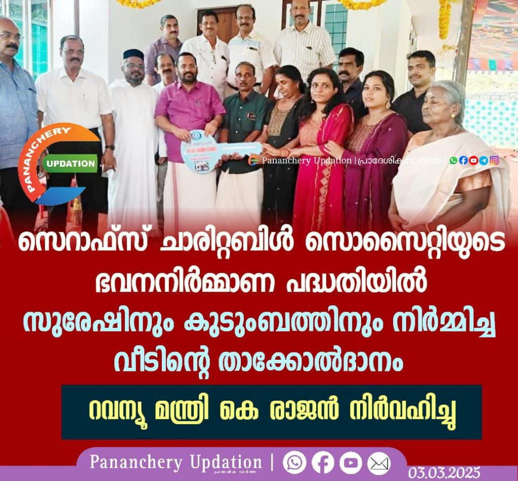 സെറാഫ്സ് ചാരിറ്റബിൾ സൊസൈറ്റിയുടെ ഭവനനിർമ്മാണ പദ്ധതിയിൽ സുരേഷിനും കുടുംബത്തിനും നിർമ്മിച്ച വീടിന്റെ താക്കോൽദാനം റവന്യൂ മന്ത്രി കെ രാജൻ നിർവഹിച്ചു
