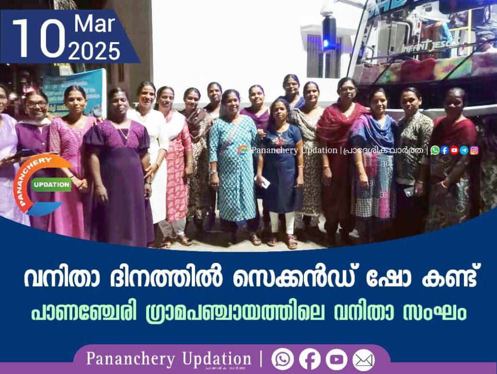 ലോക വനിതാ ദിനാചരണത്തിന്റെ ഭാഗമായി പാണഞ്ചേരി പഞ്ചായത്തിലെ അമ്പതോളം പേരടങ്ങിയ വനിതകളുടെ സംഘം തൃശൂരിൽ സെക്കൻഡ് ഷോ സിനിമ കണ്ടു. മുൻ വർഷങ്ങളിൽ വനിതാ ദിനത്തിന്റെ ഭാഗമായി ‘രാത്രി ഞങ്ങൾക്കും സ്വന്തം’ എന്ന മുദ്രാവാക്യമുയർത്തി ‘രാത്രി നടത്തം’ എന്ന പരിപാടി നടത്താറുണ്ടായിരുന്നു. എന്നാൽ ഈ വർഷം സംസ്ഥാന വനിത ശിശുക്ഷേമ വകുപ്പ് സ്ത്രീകളെ സെക്കൻഡ് ഷോ സിനിമയ്ക്ക് കൊണ്ടു പോകുന്നതിന് വേണ്ട സൗകര്യങ്ങൾ ചെയ്യണമെന്ന് ആവശ്യപ്പെട്ട് പഞ്ചായത്തുകൾക്ക് സർക്കുലർ അയച്ചിരുന്നു. ഇതിന്റെ ഭാഗമായാണ് വനിതകളുടെ സംഘം തൃശൂർ രാഗം തിയറ്ററിൽ സെക്കൻഡ് ഷോ സിനിമ കണ്ടത്. പഞ്ചായത്ത് വൈസ്പ്രസിഡന്റ് സാവിത്രി സദാനന്ദൻ നേതൃത്വം നൽകി. ഐസിഡിഎസ് സൂപ്പർവൈസർ ജിനു, ഫെലിസിറ്റേറ്റർ നീതു, പഞ്ചായത്ത് മെമ്പർ ഷൈലജ വിജയകുമാർ എന്നിവരും പങ്കെടുത്തു. ഒരുമിച്ചുള്ള യാത്രയും സിനിമ ആസ്വാദിക്കാൻ കഴിഞ്ഞതും അവിസ്മരണീയമായ അനുഭവമായിരുന്നുവെന്ന് വനിതകൾ പറഞ്ഞു