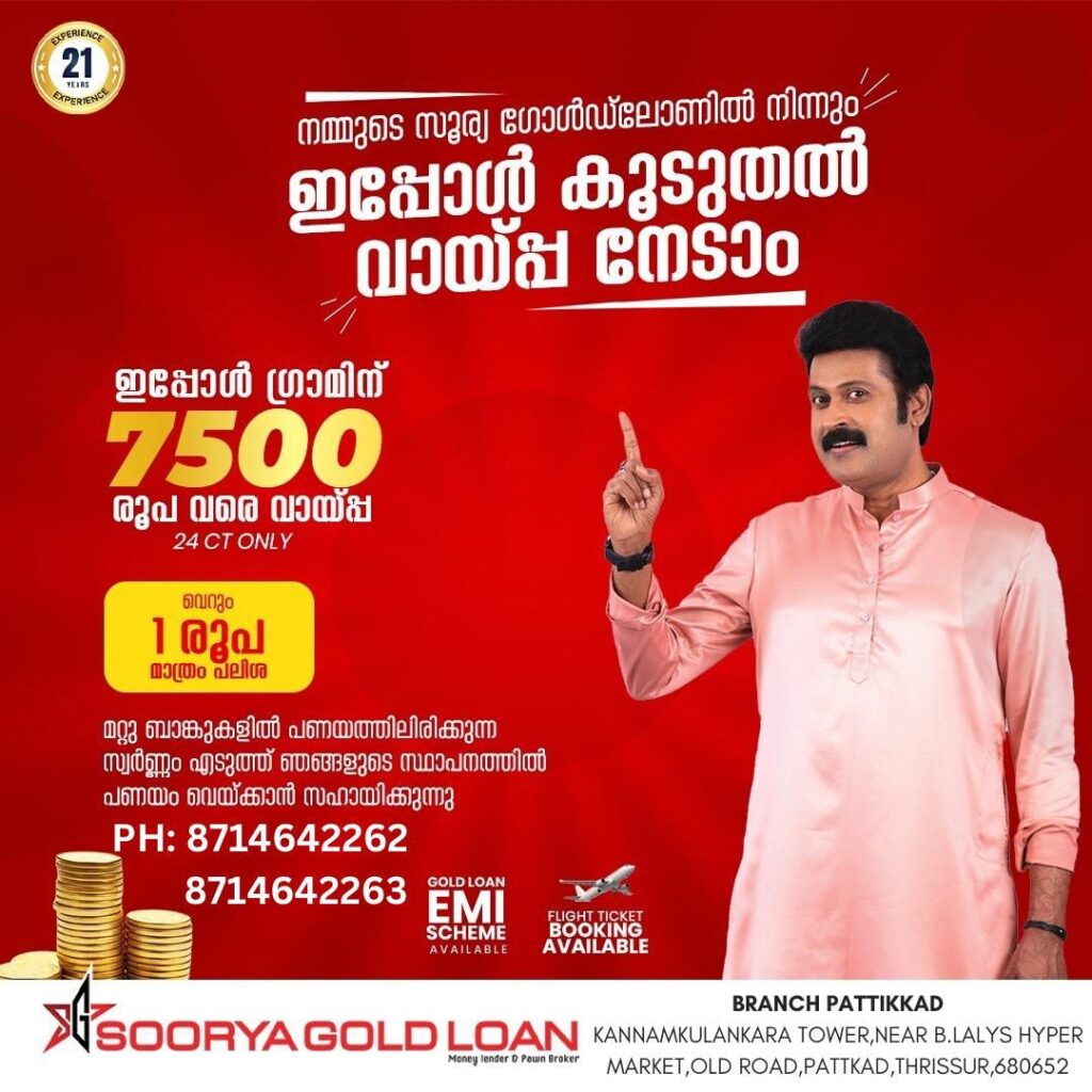 നമ്മുടെ സൂര്യ ഗോൾഡ് ലോണിൽ നിന്നും ഇപ്പോൾ കൂടുതൽ വായ്പ്പ നേടാം…