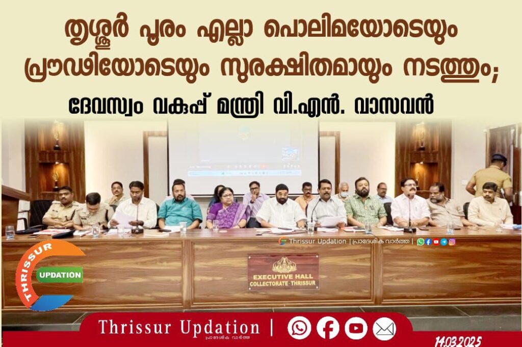 തൃശ്ശൂര് പൂരം എല്ലാ പൊലിമയോടെയും പ്രൗഢിയോടെയും സുരക്ഷിതമായും നടത്തും ദേവസ്വം വകുപ്പ് മന്ത്രി വി.എൻ. വാസവന്
