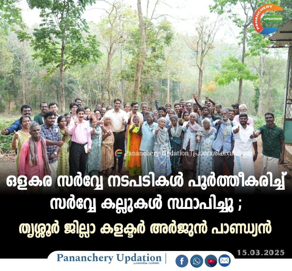 ജില്ലയിലെ ആദിവാസി മേഖലയിലെ ദീര്ഘകാല പ്രശ്നങ്ങള് ഓരോന്നായി പരിഹരിച്ചുവരികയാണെന്നും സമയബന്ധിതമായി ഭൂമിപ്രശ്നങ്ങള് പരിഹരിക്കുന്നതിന് പ്രത്യേക ശ്രദ്ധ കേന്ദ്രീകരിച്ചതില് ഒളകര ആദിവാസി ഉന്നതിയിലെ വര്ഷങ്ങളായുള്ള ഭൂമിപ്രശ്നത്തിന് പരിഹാരമാകുകയാണെന്നും ജില്ലാ കളക്ടര് പറഞ്ഞു. യോഗത്തിനുശേഷം ഊരുനിവാസികള്ക്ക് മധുരം നല്കി സര്വ്വേ നടപടികള് പൂര്ത്തീകരിച്ചതിന്റെ സന്തോഷത്തിലും ജില്ലാ കളക്ടര് പങ്കുചേര്ന്നു.