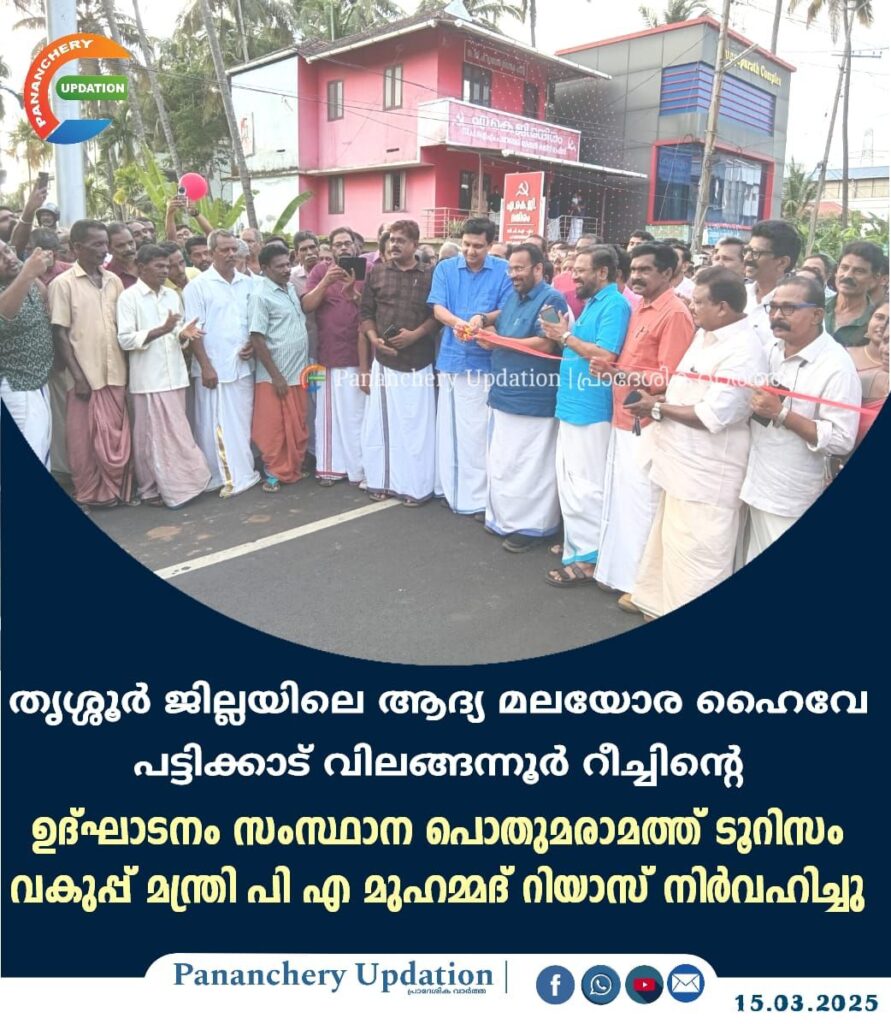 സംസ്ഥാന സർക്കാർ കിഫ്ബി ധനസഹായത്തോടെ നിർമ്മിച്ച ജില്ലയിലെ ആദ്യ മലയോര ഹൈവേ പട്ടിക്കാട് വിലങ്ങന്നൂർ റീച്ചിൻ്റെ ഉദ്ഘാടനം സംസ്ഥാന പൊതുമരാമത്ത് ടൂറിസം വകുപ്പ് മന്ത്രി പി എ മുഹമ്മദ് റിയാസ് നിർവഹിച്ചു.