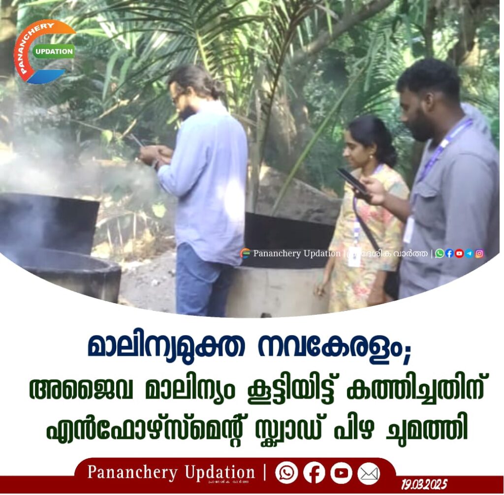 മാലിന്യമുക്ത നവകേരളം; അജൈവ മാലിന്യം കൂട്ടിയിട്ട് കത്തിച്ചതിന് എൻഫോഴ്സ്മെന്റ് സ്ക്വാഡ് പിഴ ചുമത്തി