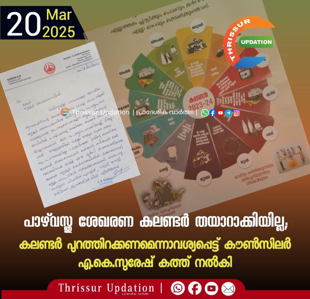 പാഴ്വസ്തു ശേഖരണ കലണ്ടർ തയാറാക്കിയില്ല; കലണ്ടർ പുറത്തിറക്കണമെന്നാവശ്യപ്പെട്ട് കൗൺസിലർ എ.കെ.സുരേഷ് കത്ത് നൽകി