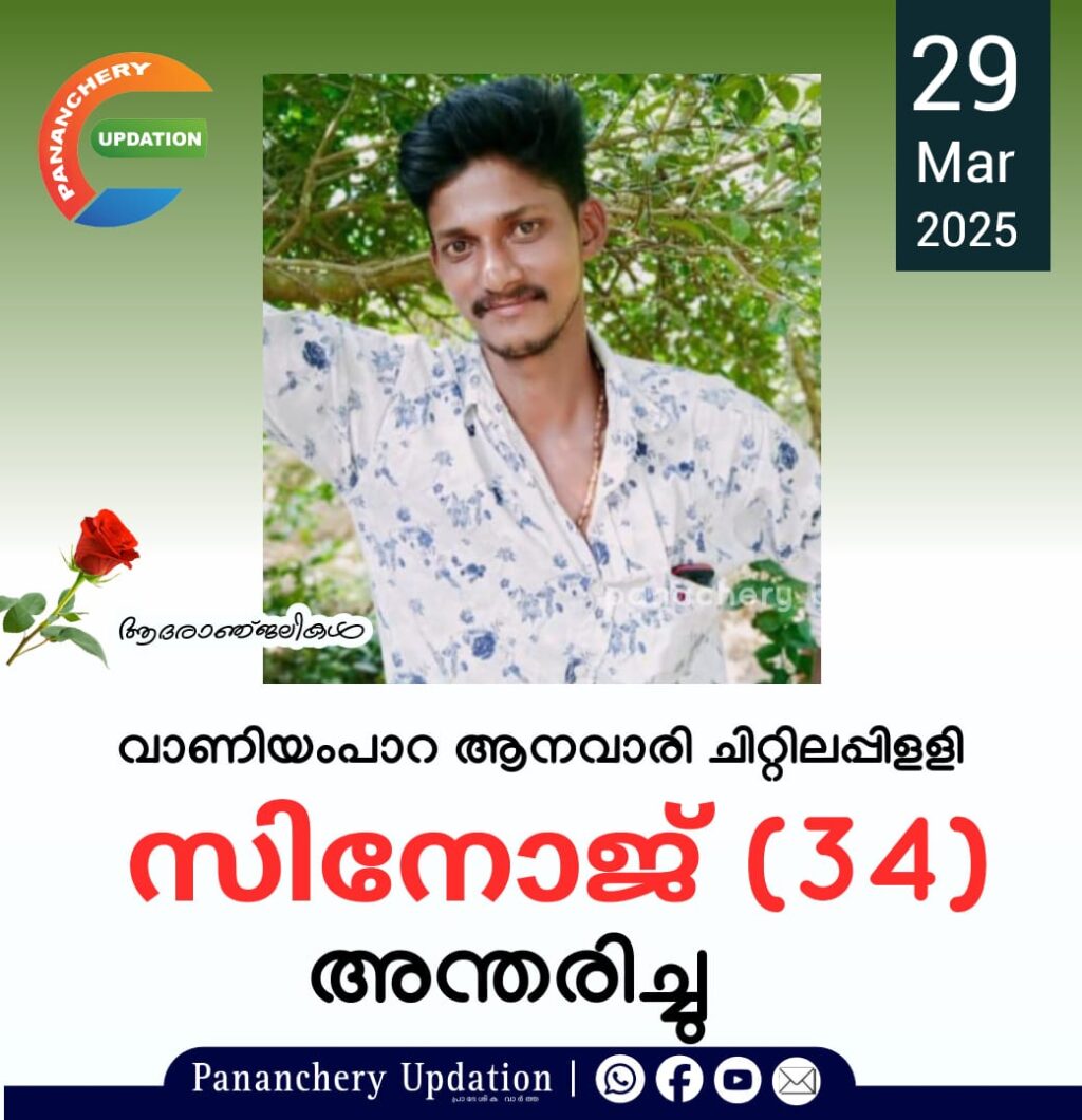 സംസ്ക്കാരം ഇന്ന് (29.03.2025- ശനി) വൈകീട്ട് 5 മണിയ്ക്ക് കൊമ്പഴ സെൻറ് ജോസഫ് ചർച്ചിൽ.അമ്മ ജെസി. സഹോദരൻ സിജോ
