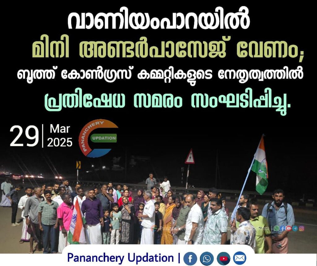 വാണിയംപാറയിൽ മിനി അണ്ടർപാസേജ് വേണം; ബൂത്ത് കോൺഗ്രസ് കമ്മറ്റികളുടെ നേതൃത്വത്തിൽ പ്രതിഷേധ സമരം സംഘടിപ്പിച്ചു.
