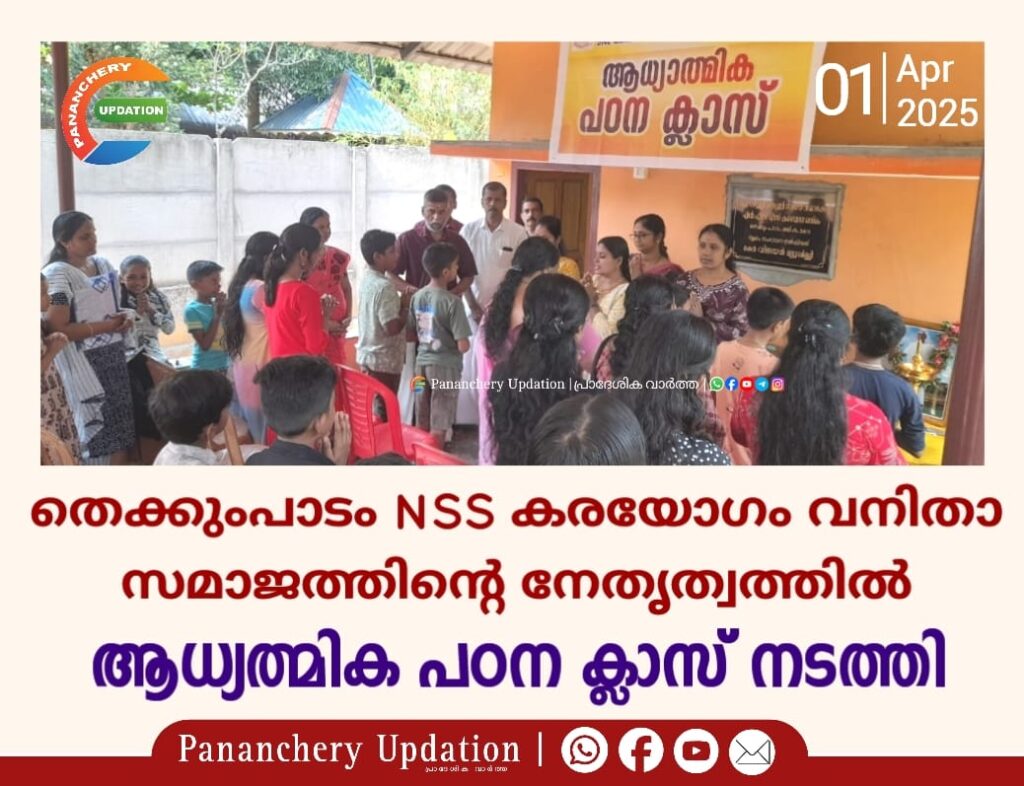 തെക്കുംപാടം NSS കരയോഗം, 5 143 വനിതാ സമാജത്തിൻ്റെ നേതൃത്വത്തിൽ ആധ്യത്മിക പഠന ക്ലാസ് നടത്തി. മുതിർന്ന വനിതാംഗം സുശീല ഭദ്രദീപം തെളിയിച്ചു. കരയോഗം പ്രസിഡൻ്റ് N S പീതാംബരൻ, അമൃത നിബിൻ എന്നിവർ ക്ലാസെടുത്തു. വനിതാ സമാജം പ്രസിഡൻ്റ് മിനി രാജ്കുമാർ അദ്ധ്യക്ഷത വഹിച്ചു. മിനി രാജൻ സ്വാഗതം പറഞ്ഞ ചടങ്ങിൽ ജ്യോതി രമേശൻ നന്ദി പറഞ്ഞു. കരയോഗം സെക്രട്ടറി രാജേന്ദ്രൻ മുല്ലപ്പിള്ളി ആശംസ നേർന്നു. കുട്ടികളിൽ സ്നേഹവും ബഹുമാനവും, ഐക്യവും, വളർത്തിയെടുത്ത് ലഹരിക്കെതിരെ ബോധവൽകരണം നടത്തി ഈശ്വരവിശ്വാസികളായനല്ല കുട്ടികളായി വളരുന്നതിനാണ് ആത്മീയ പഠന ക്ലാസ്സ് സംഘടിപ്പിച്ചതെന്ന് ഭാരവാഹികൾ അറിയിച്ചു.