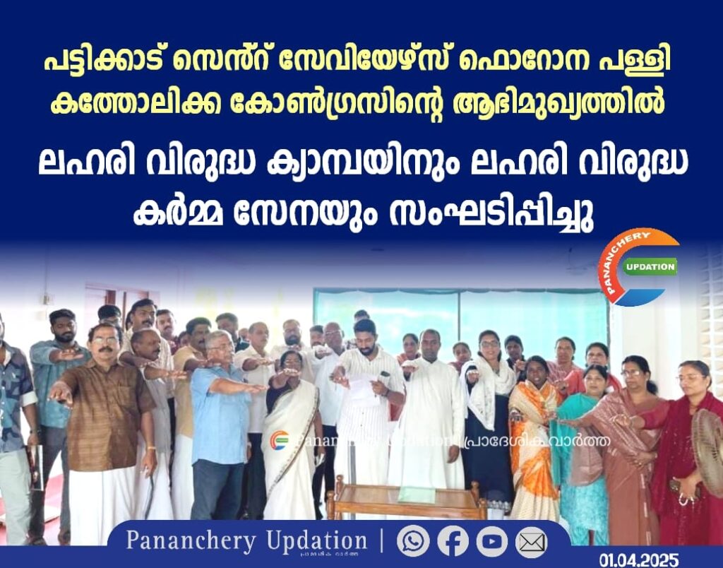 പട്ടിക്കാട് സെൻ്റ് സേവിയേഴ്സ് ഫൊറോന പള്ളി കത്തോലിക്ക കോൺഗ്രസിന്റെ ആഭിമുഖ്യത്തിൽ ഗ്ലോബൽ സമിതിയുടെയും അതിരൂപതാസമിതിയുടെയും ആഹ്വാന പ്രകാരം ലഹരിവിരുദ്ധ കർമ്മസേന രൂപീകരിക്കുകയും ലഹരിവിരുദ്ധ സന്ദേശ – ക്യാമ്പയിൻ സംഘടിപ്പിക്കുകയും ചെയ്തു. വർദ്ധിച്ചു വരുന്ന എം ഡി എം എ പോലുള്ള ലഹരി വസ്തുക്കളുടെ ഉപയോഗം നമ്മുടെ സമൂഹത്തെ പ്രത്യേകിച്ച് യുവതലമുറയെ ഒരു ക്യാൻസർ പോലെ കാർന്നു തിന്നു കൊണ്ടിരിക്കുകയാണ്. ഈ സാഹചര്യത്തിൽ പട്ടിക്കാട് ഫൊറോന പള്ളിയുടെ ആഭിമുഖ്യത്തിൽ കത്തോലിക്ക കോൺഗ്രസ് പ്രസ്ഥാനത്തിന്റെയും എല്ലാ സംഘടനകളുടെയും സംയുക്ത ആഭിമുഖ്യത്തിൽ 51 അംഗകർമ്മ സേന രൂപീകരിച്ചു. ലഹരി വിരുദ്ധ പ്രതിജ്ഞ പ്രസിഡൻ്റ് അജിഷ് പുത്തൻ പുരയ്ക്കൽ ചൊല്ലിക്കൊടുത്തു. യോഗം റവ. ഫാദർ ഡെന്നി താണിക്കൽ ഉദ്ഘാടനം ചെയ്തു. കത്തോലിക്ക കോൺഗ്രസ് പ്രസിഡൻ്റ് അജിഷ് പുത്തൻപുരയ്ക്കൽ അധ്യക്ഷത വഹിച്ചു. അതിരൂപത വർക്കിംഗ് കമ്മിറ്റി അംഗം ലീലാമ്മ തോമസ് ലഹരി വിരുദ്ധ സന്ദേശം നൽകി. വർഗീസ് വട്ടംകാട്ടിൽ, ആന്റോ മഞ്ഞില, ചാക്കോച്ചൻ, ജെസ്സിപോൾ, മേഴ്സി റോസൽ, മത്തായി ജേക്കബ്, ആന്റണി, അനീസ് ജോൺസൺ, അജിൻ ഷാജി, അനീഷ്,, സോയറ്റ്, ജ്യോതി ബിജു, മോനിക്ക, മേരി, ടെസ്സി, ഡൊമിനിക്ക്, ലിജോ എന്നിവർ സംസാരിച്ചു.