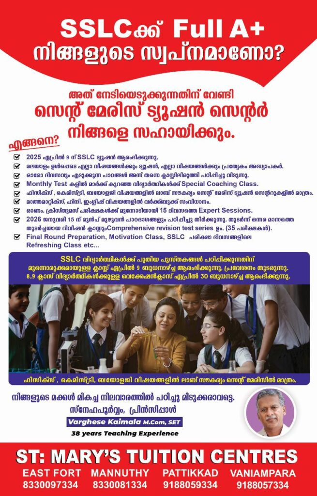 👉2025 ഏപ്രിൽ 9 ന് SSLC ട്യൂഷൻ ആരംഭിക്കുന്നു.