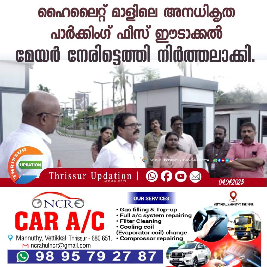 ഹൈലൈറ്റ് മാളിലെ അനധികൃത പാര്ക്കിംഗ് ഫീസ് ഈടാക്കല്; മേയര് നേരിട്ടെത്തി നിര്ത്തലാക്കി.