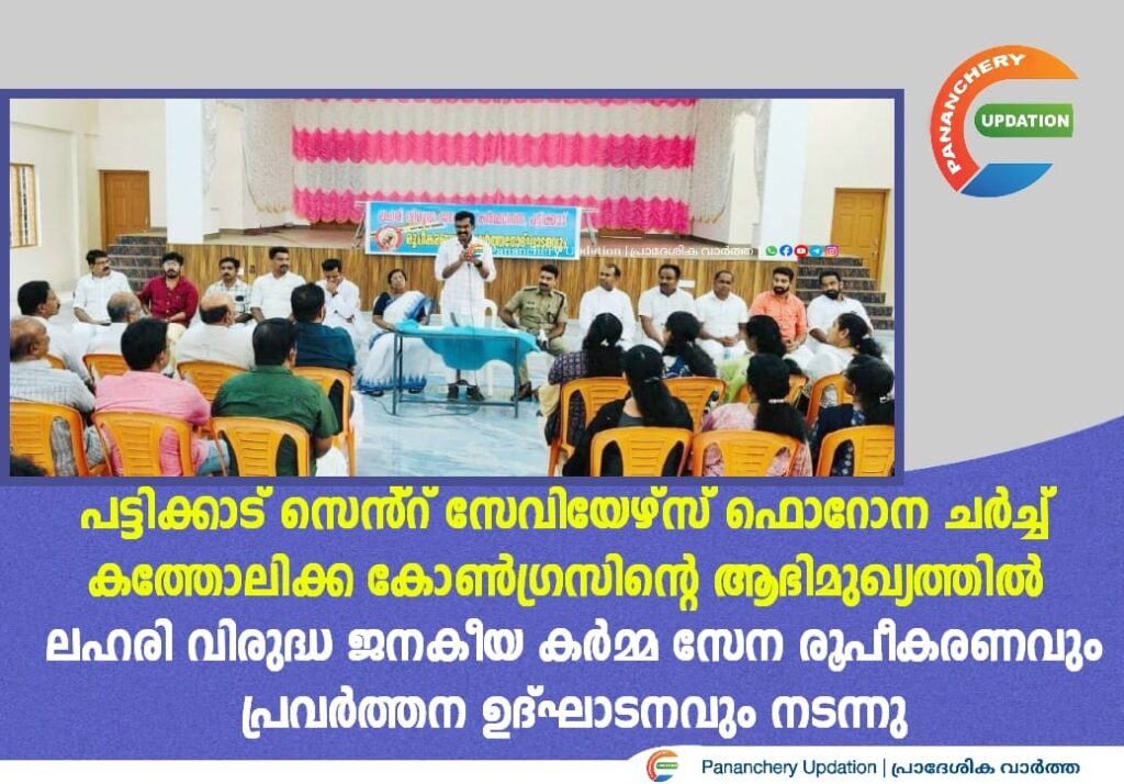 പട്ടിക്കാട് സെൻ്റ് സേവിയേഴ്സ് ഫൊറോന ചർച്ച് കത്തോലിക്ക കോൺഗ്രസിന്റെ ആഭിമുഖ്യത്തിൽ ലഹരി വിരുദ്ധജനകീയ കർമ്മ സേനയും അതിന്റെ പ്രവർത്തന ഉദ്ഘാടനവും നിർവഹിച്ചു. പട്ടിക്കാട് സെന്റ് സേവിയേഴ്സ് ഫൊറോന ചർച്ച് വികാരി വെരി റവ: ഫാദർ ഡെന്നി താണിക്കൽ അധ്യക്ഷത വഹിച്ച സൗഹൃദ യോഗം പാണഞ്ചേരി പഞ്ചായത്ത് പ്രസിഡൻ്റ് പി. പി. രവീന്ദ്രൻ ഉദ്ഘാടനം ചെയ്തു. പീച്ചി പോലീസ് സബ് ഇൻസ്പെക്ടർ ആനന്ദ് സി എം മുഖ്യപ്രഭാഷണം നടത്തി. മദ്യവിരുദ്ധ സമിതി ഫൊറോന ആനിമേറ്റർ ഫാദർ ഷിജോൺ കുഴിക്കാട്ട് മ്യാലിൽ ലഹരി വിരുദ്ധ സന്ദേശം നൽകി.വർദ്ധിച്ചുവരുന്ന എംഡിഎംഎ പോലുള്ള ലഹരി വസ്തുക്കളുടെ ഉപയോഗം നമ്മുടെ സമൂഹത്തെ, യുവതലമുറയെ, വിദ്യാർത്ഥി സമൂഹത്തെ, പാടെ നശിപ്പിച്ചു കൊണ്ടിരിക്കുകയാണ്. ഈ സാഹചര്യത്തിൽ സമൂഹത്തിന്റെ വ്യത്യസ്ത മേഖലയിലുള്ളവരെ സമുന്നയിപ്പിച്ചുകൊണ്ട് ഒരു ജനകീയകർമ്മ സേനയ്ക്ക് രൂപം കൊടുത്തു .പാണഞ്ചേരി പഞ്ചായത്തിലെ എല്ലാ ഹൈസ്കൂളുകളുടെയും ഹയർസെക്കൻഡറി സ്കൂളുകളുടെയും ലോവർ പ്രൈമറി സ്കൂളുകളുടെയും പ്രതിനിധികൾ, വ്യത്യസ്തത ക്ലബ്ബുകളുടെ പ്രതിനിധികൾ, വ്യത്യസ്ത രാഷ്ട്രീയ പാർട്ടികളുടെ പ്രതിനിധികൾ, വിവിധ മാധ്യമപ്രവർത്തകർ, ടാക്സി, ഓട്ടോ ഡ്രൈവേഴ്സ് യൂണിയൻ പ്രതിനിധികൾ, ജനപ്രതിനിധികൾ, പട്ടിക്കാട് പള്ളിയിലെ ലഹരി വിരുദ്ധ കർമ്മ സേന അംഗങ്ങൾ തുടങ്ങി എല്ലാ മേഖലകളെയും സമുന്നയിപ്പിച്ചു കൊണ്ടാണ് കർമ്മ സേനയ്ക്ക് രൂപം കൊടുത്തത്. പഞ്ചായത്ത് പ്രസിഡന്റ് രക്ഷാധികാരിയും ഫൊറോന വികാരി ചെയർമാനുമായി 51 അംഗ കമ്മിറ്റിയും രൂപീകരിച്ചു.ലഹരിവസ്തുക്കളുടെ ഉപയോഗം യുവതലമുറയിലും വിദ്യാർഥികൾക്കിടയിലും വർധിച്ചുവരുന്ന സാഹചര്യത്തിൽ സമൂഹത്തിന്റെ വ്യത്യസ്ത മേഖലയിലുള്ളവരെ ഒന്നിപ്പിച്ചുകൊണ്ട് ലഹരിക്കെതിരെ പോരാടുക എന്നതാണ് കർമ്മസേനയുടെ ലക്ഷ്യമെന്ന് ചെയർപേഴ്സൻ ലീലാമ്മ തോമസ് വിശദികരിച്ചു. പാണഞ്ചേരി പഞ്ചായത്തിലെ വിവധ സ്കൂളുകൾ, സംഘടനകൾ, രാഷ്ട്രീയ പ്രസ്ഥാനങ്ങൾ, ഡ്രൈവേഴ്സ് യൂണിയനുകൾ എന്നിവയുടെ പ്രതിനിധികൾ, ജനപ്രതിനിധികൾ, ഫൊറോന പള്ളിയിലെ ലഹരിവിരുദ്ധ സേനയിലെ അംഗങ്ങൾ എന്നിവരെല്ലാം കർമ്മസേനയുടെ ഭാഗമാകും.