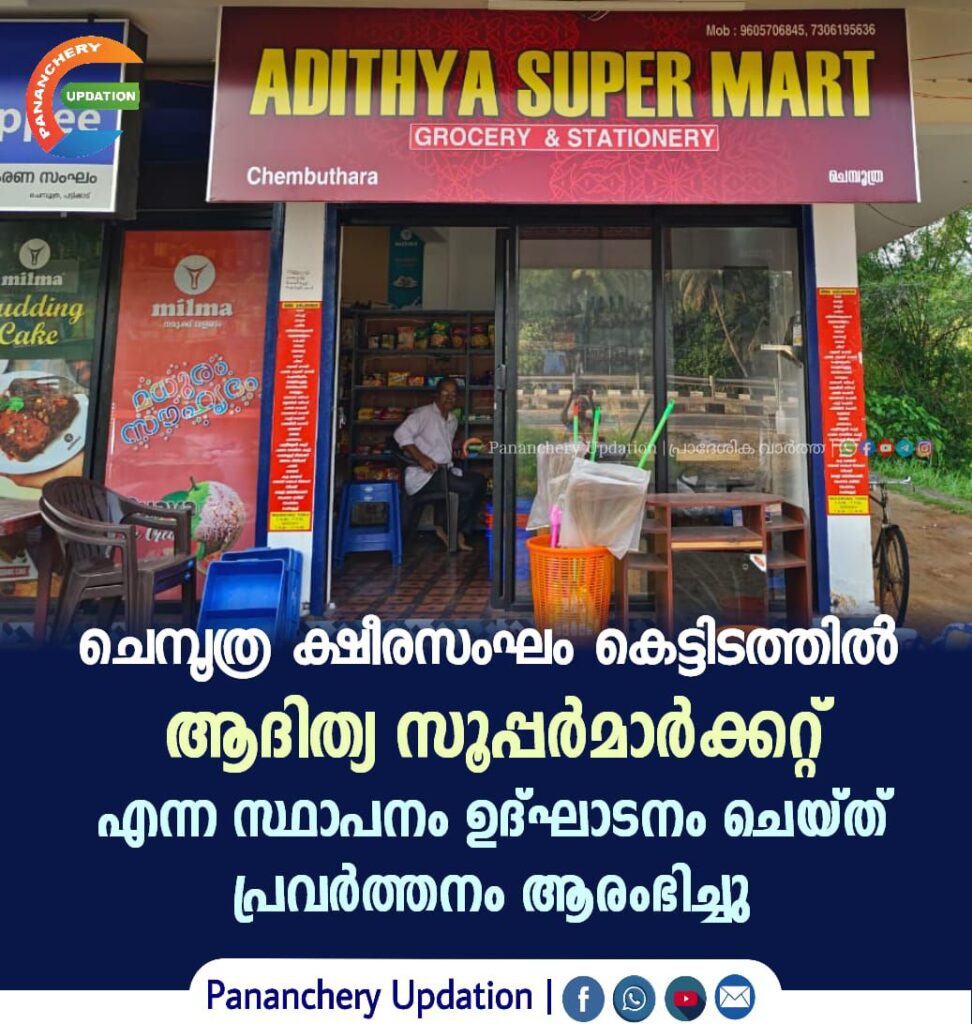 ഗുണമേന്മയുള്ള നിത്യോപയോഗ സാധനങ്ങൾ കുറഞ്ഞ വിലയ്ക്ക് നിങ്ങളിലേക്ക് എത്തിക്കുന്നതിന് പാണഞ്ചേരി ക്ഷീരസംഘം കെട്ടിടത്തിൽ മിൽമ ഷോപ്പിനോട് ചേർന്ന് ആദിത്യ സൂപ്പർ മാർട്ട് എന്ന സ്ഥാപനം ഉദ്ഘാടനം ചെയ്ത പ്രവർത്തനം ആരംഭിച്ചു.