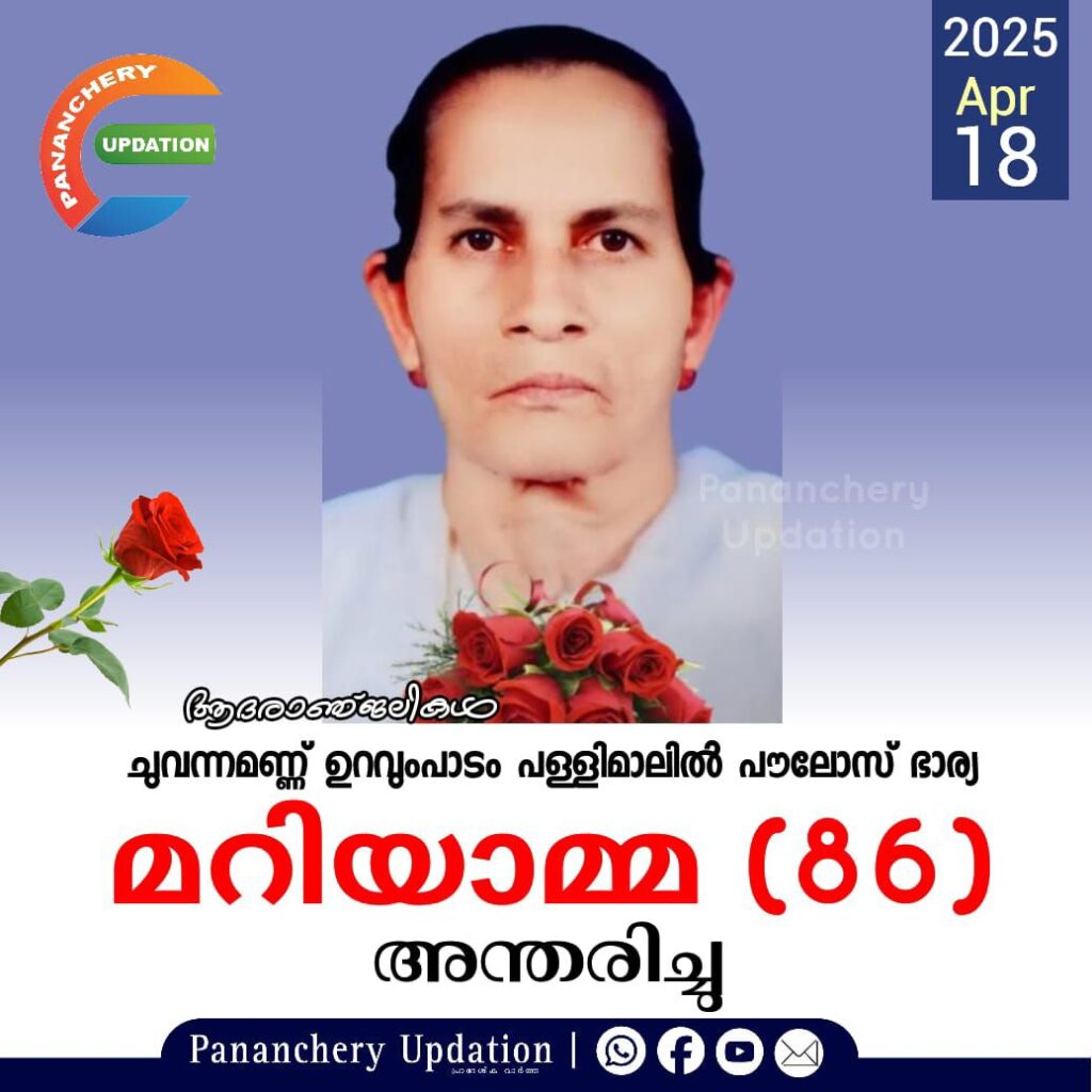 ചുവന്നമണ്ണ് ഉറവുംപാടം പള്ളിമാലിൽ പൗലോസ് ഭാര്യ മറിയാമ്മ (86) അന്തരിച്ചു
