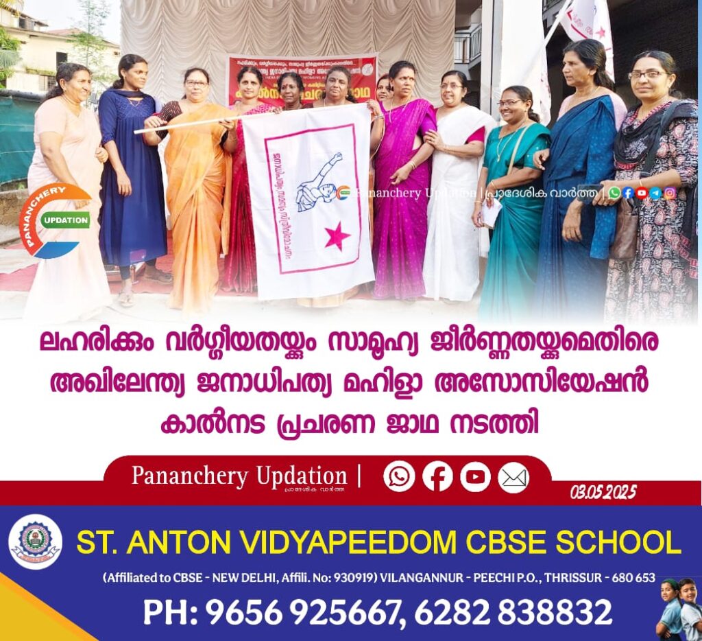 ലഹരിക്കും വർഗ്ഗീയതയ്ക്കും സാമൂഹ്യ ജീർണ്ണതയ്ക്കുമെതിരെ അഖിലേന്ത്യ ജനാധിപത്യ മഹിളാ അസോസിയേഷൻ കാൽനട പ്രചരണ ജാഥ നടത്തി