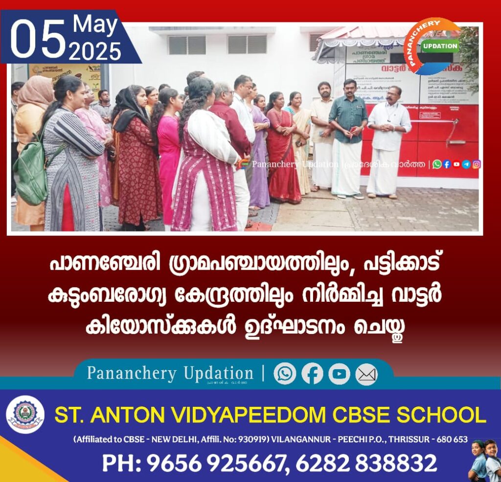 പാണഞ്ചേരി ഗ്രാമപഞ്ചായത്തിലും, പട്ടിക്കാട് കുടുംബരോഗ്യ കേന്ദ്രത്തിലും നിർമ്മിച്ച വാട്ടർ കിയോസ്ക്കുകൾ ഉദ്ഘാടനം ചെയ്തു