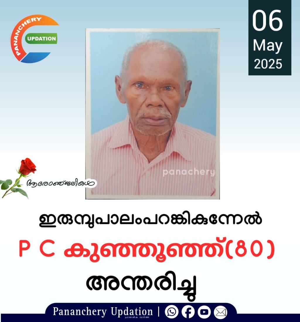 ആദ്യകാല സിപിഎം പ്രവർത്തകനായിരുന്ന ഇരുമ്പുപാലം പറങ്കികുന്നേൽ പി.സി കുഞ്ഞൂഞ്ഞ് (80) അന്തരിച്ചു. സംസ്കാരം ഇന്ന് (06.05.2025-ചൊവ്വാഴ്ച) ഉച്ചകഴിഞ്ഞ് 3.30ന് പൂമല പീസ് ഗാർഡൻ പള്ളിയിൽ. ഭാര്യ: ഓമന. മക്കൾ: ശശി, സാറാമ്മ, ലൈസ.