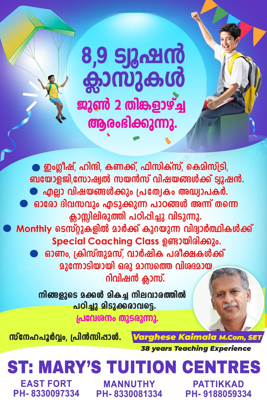 ✅ഇംഗ്ലീഷ്, ഹിന്ദി, കണക്ക്, ഫിസിക്സ്, കെമിസ്ട്രി, ബയോളജി,സോഷ്യൽ സയൻസ് വിഷയങ്ങൾക്ക് ട്യൂഷൻ.