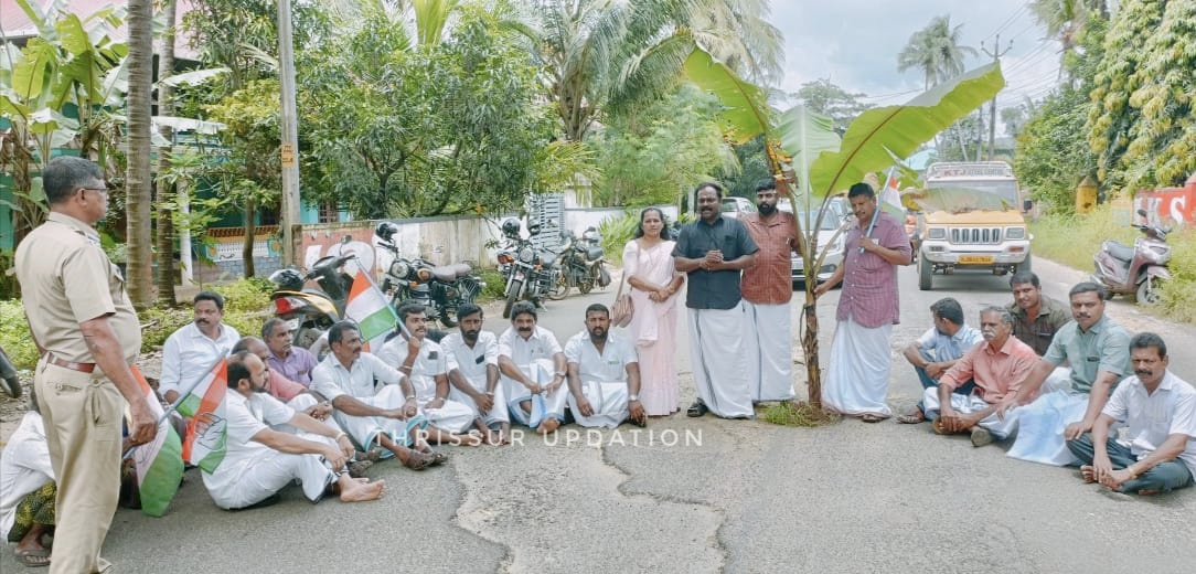 റോഡ് ഉപരോധിച്ച് വാഴനട്ട് പീച്ചി മണ്ഡലം കോൺഗ്രസ് കമ്മിറ്റി