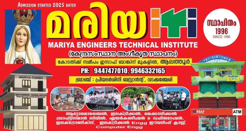 *1 st Engneers Technical Institute (കേന്ദ്രസംസ്ഥാന അംഗീകൃത സ്ഥാപനം) പ്രിയദർശിനി ബസ്റ്റാന്റ് വടക്കഞ്ചേരി*