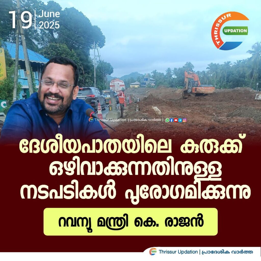 ദേശീയപാതയിലെ കുരുക്ക് ഒഴിവാക്കുന്നതിനുള്ള നടപടികള് പുരോഗമിക്കുന്നു; റവന്യൂ മന്ത്രി കെ. രാജൻ