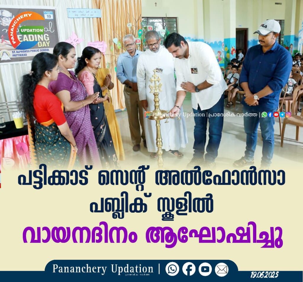 പട്ടിക്കാട് സെന്റ് അൽഫോൻസാ പബ്ലിക് സ്കൂളിൽ വായന ദിനാഘോഷം സംഘടിപ്പിച്ചു. KFRI ലെ സയന്റിസ്റ്റും ഡിപ്പാർട്ട്മെന്റ് ഓഫ് ലൈബ്രറി ആന്റ് ഇൻഫർമേഷൻ ഉദ്യോഗസ്ഥനുമായ അരുൺ വി. ആർ. വായനാദിനം ഉദ്ഘാടനം ചെയ്തു. വായനാദിനത്തിന്റെ പ്രാധാന്യത്തെക്കുറിച്ചും വായന നൽകുന്ന ജീവിതപാഠങ്ങളെക്കുറിച്ചും അദ്ദേഹം സംസാരിച്ചു.സ്കൂൾ മാനേജർ ഫാ. തോമസ് വടക്കൂട്ട് അധ്യക്ഷത വഹിച്ചു.