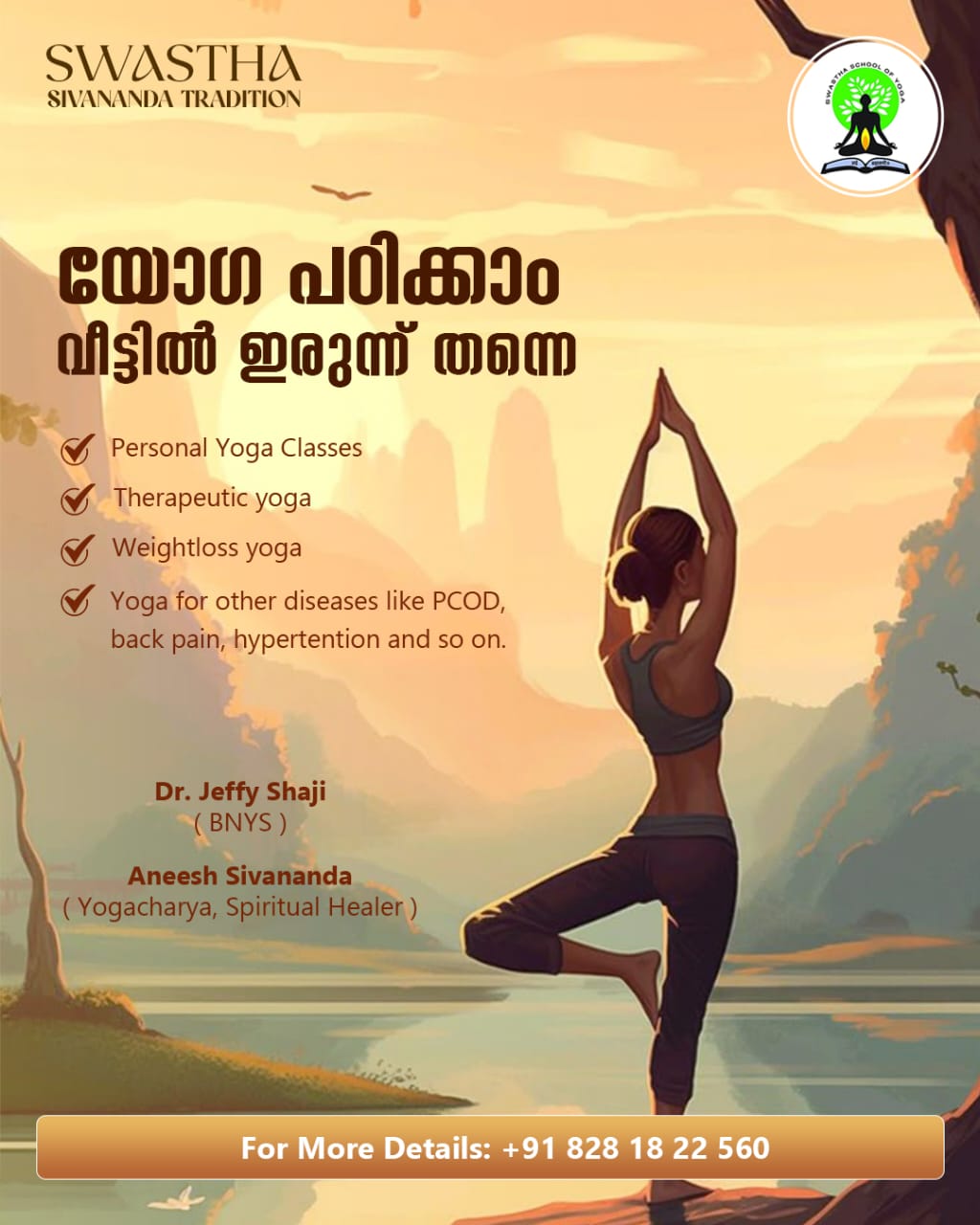 Local News SWASTHA SIVANANDA TRADITION By Author / June 21, 2025 Share this News യോഗ പഠിക്കാം വീട്ടിൽ ഇരുന്ന് തന്നെ🧘♀️Personal Yoga Classes🧘♀️Therapeutic yoga🧘♀️Weightloss yoga🧘♀️Yoga for other diseases like PCOD, back pain, hypertention and so on.Dr. Jeffy Shaji (BNYS)Aneesh Sivananda(Yogacharya, Spiritual Healer)For More Details: +91 828 18 22 560 Post Views: 167 Post navigation Previous ഉറവുംപാടം കാനാകുന്നേൽ പരേതനായ ഔസേഫ് ഭാര്യ ഏലിക്കുട്ടി (86) അന്തരിച്ചുNext തൃശൂർ, മാള മെറ്റ്സ് കോളേജിൽ അന്താരാഷ്ട്ര യോഗാ ദിനം മാള പഞ്ചായത്ത് പ്രസിഡന്റ് ബിന്ദു ബാബു ഉദ്ഘാടനം ചെയ്തു