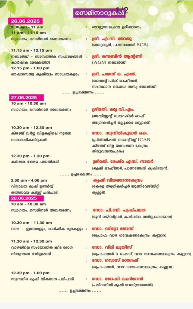 പാണഞ്ചേരി സർവീസ് സഹകരണ ബാങ്കും കാർഷിക വികസന കർഷക ക്ഷേമ വകുപ്പും കണ്ണാറ വാഴ ഗവേഷണ കേന്ദ്രവും സംയുക്തമായി 26, 27, 28 തീയതികളിൽ ‘ഞാറ്റുവേല 2025’ സംഘടിപ്പിക്കുന്നു