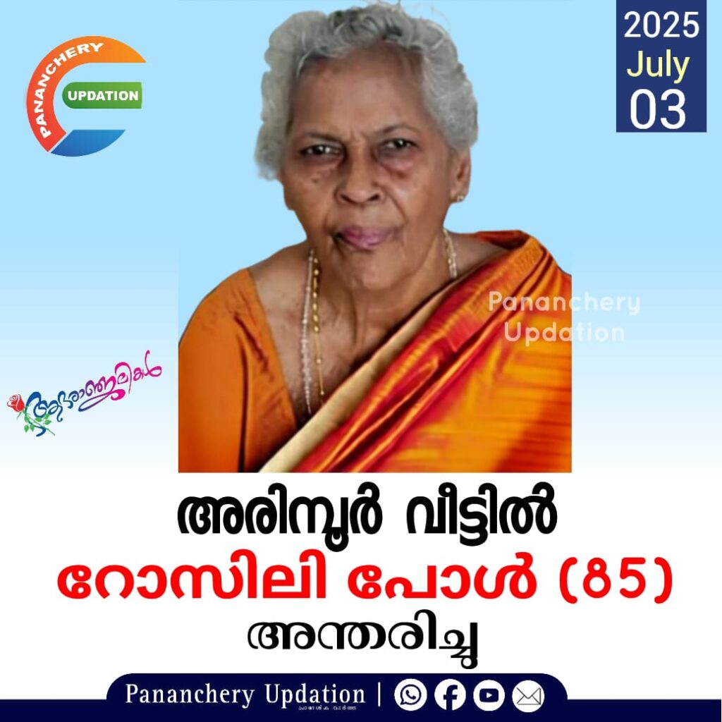 അരിമ്പൂർ വീട്ടിൽ റോസിലി പോൾ (85) അന്തരിച്ചു.
