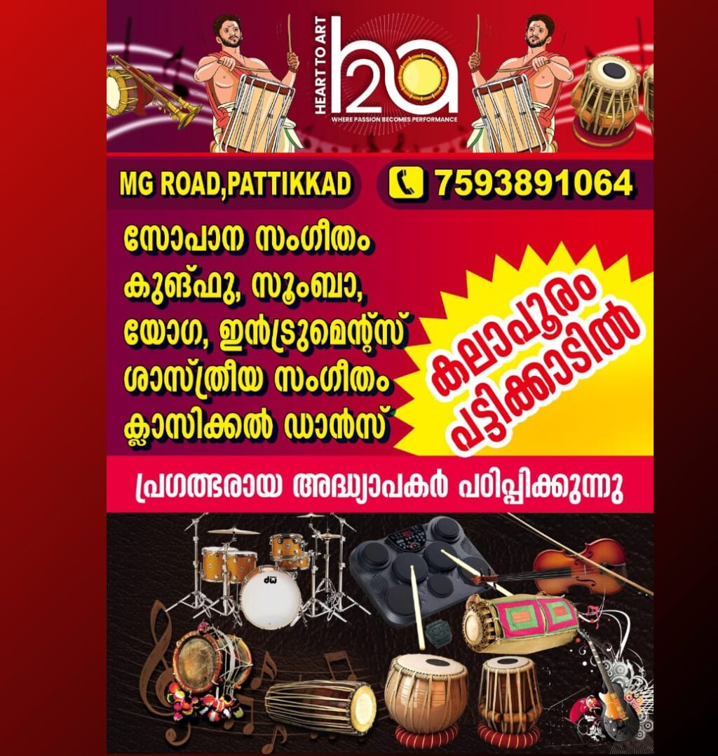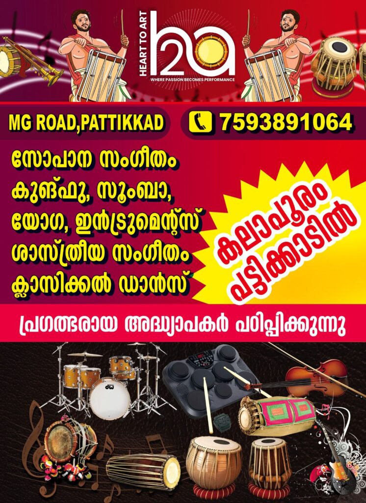 കീബോർഡ്, തബല ഗിറ്റാർ, വയലിൻ ഡ്രംസ്, ഫ്ളൂട്ട് മൃദംഗം, റിഥം പാഡ് തുടങ്ങി എല്ലാവിധ സംഗീത ഉപകരണങ്ങളും നൃത്തം (ഭരതനാട്യം, മോഹിനിയാട്ടം) ശാസ്ത്രീയ സംഗീതം സൂംബാ, യോഗ, കരാട്ടേ