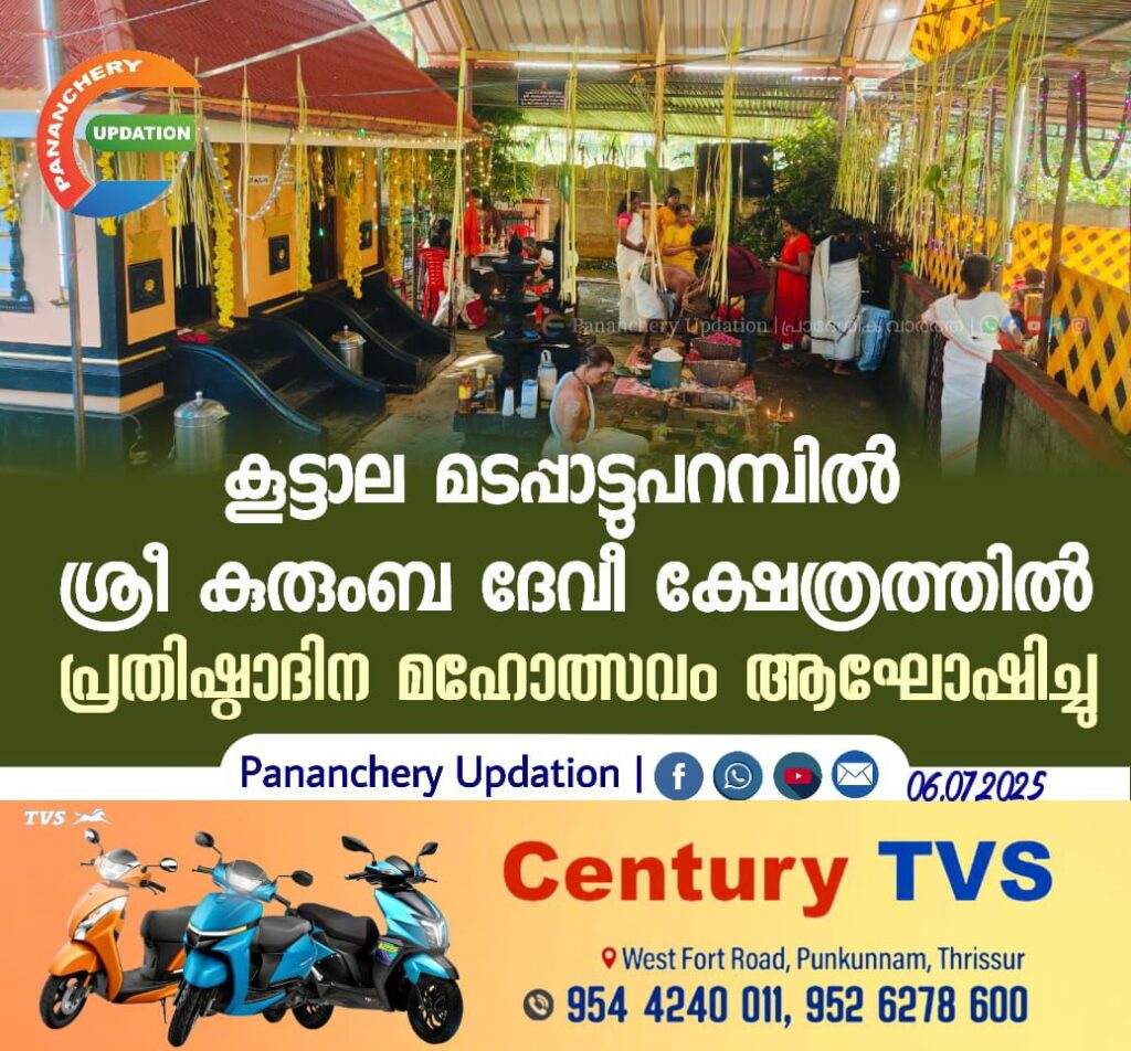 കൂട്ടാല മടപ്പാട്ടുപറമ്പിൽ ശ്രീ കുരുംബ ദേവീ ക്ഷേത്രത്തിലെ പ്രതിഷ്ഠാദിന മഹോത്സവം ആഘോഷിച്ചു