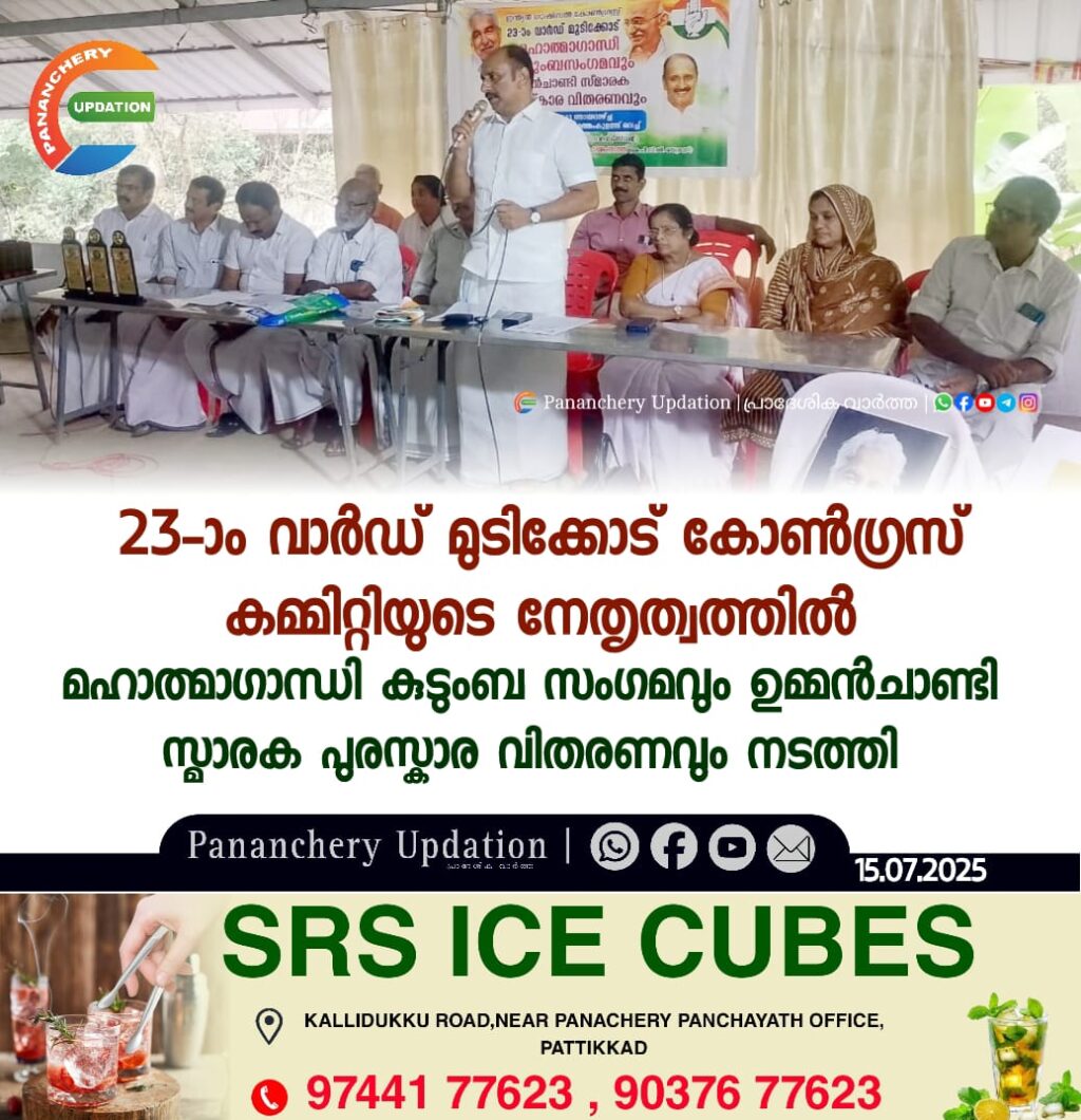 23-ാം വാർഡ് മുടിക്കോട് കോൺഗ്രസ് കമ്മിറ്റിയുടെ നേതൃത്വത്തിൽ മഹാത്മാഗാന്ധി കുടുംബ സംഗമവും ഉമ്മൻചാണ്ടി സ്മാരക പുരസ്കാര വിതരണവും നടത്തി