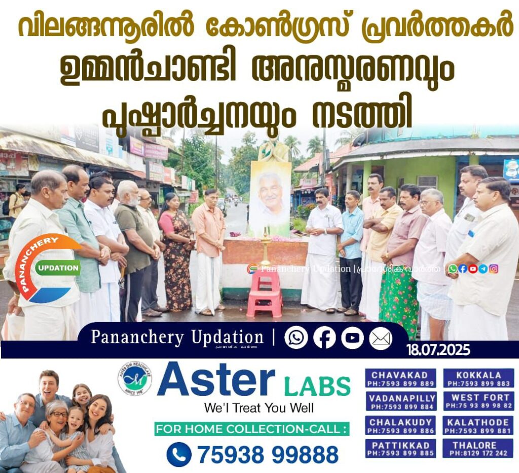 വിലങ്ങന്നൂരിൽ കോൺഗ്രസ് പ്രവർത്തകർ ഉമ്മൻചാണ്ടി അനുസ്മരണവും പുഷ്പാർച്ചനയും നടത്തി.