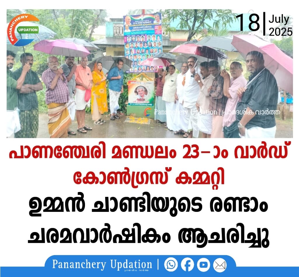 ചാത്തംകുളം സെൻ്ററിൽ പുഷ്പ്പാർച്ചനയും തുടർന്ന് റിട്ടയർ ചെയ്ത വാർഡിലെ പോലിസുകാരെയും ആദരിച്ചു. വാർഡ് പ്രസിഡൻ്റ് സാബൂ മണപ്പുറത്ത് അദ്ധ്യക്ഷത വഹിച്ച ചടങ്ങിൽ മണ്ഡലം വൈസ് പ്രസിഡൻ്റ് T.V ജോൺ ഉദ്ഘാടനം നിർവ്വഹിച്ചു. ഷിജോ പി ചാക്കോ, കെ.ഐ ചാക്കുണ്ണി, ഹസീന മനാഫ്, ഷിയാസ് V. M, കബിർ T.A, പരമേശ്വരൻ കുറുമാംമ്പുഴ , മുജിബ് T.K, ശിവരാമൻ കോഴിപറമ്പിൽ, അബ്ദുള്ള അമ്പലത്ത് , അസ്സിസ് പുതുവീട്ടിൽ, ബാബു കുമ്പളത്ത്പറമ്പിൽ , ഇസ്മയിൽ T.M, അരവിന്ദൻ ചീനിക്കൽ എന്നിവർ പങ്കെടുത്തു.