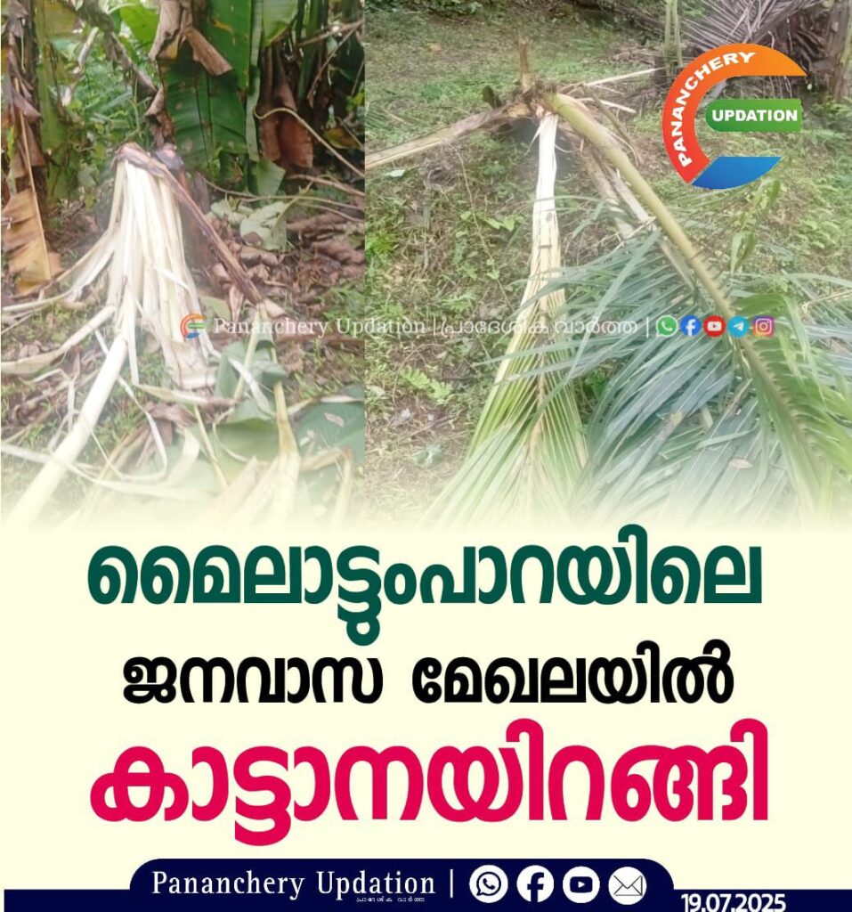 മൈലാട്ടുംപാറയിലെ ജനവാസ മേഖലയിൽ കാട്ടാനയിറങ്ങി