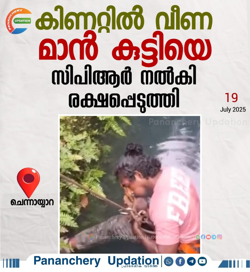 ചെന്നായ്പാറയിൽ കിണറ്റിൽ വീണ മാൻ കുട്ടിയെ സിപിആർ നൽകി രക്ഷപ്പെടുത്തി.ഇന്നലെ വൈകിട്ടാണ് സംഭവം നടന്നത്. മാൻകുട്ടി വീണ സംഭവം പട്ടിക്കാട് ഫോറസ്റ്റ് റേഞ്ച് ഓഫീസിൽ വിളിച്ച് അറിയിച്ചതിനെ തുടർന്ന് ഡി.എഫ്.ഓ അനിൽകുമാർ,പ്രവീൺ,വിജേഷ്, വാച്ചർ അരുൺ ഗോപി റെസ്ക്യൂവർ ലിജോ കെ . ജി എന്നിവരെ അടങ്ങിയ സംഘം എത്തി. മാൻകുട്ടി വെള്ളത്തിലേക്ക് മുങ്ങിത്താഴുന്ന സാഹചര്യത്തിൽ റെസ്ക്യൂവർ ലിജോ വെള്ളത്തിൽ ഇറങ്ങി മാൻകുട്ടിയെ രക്ഷിച്ച് സിപിആർ നൽകുകയായിരുന്നു