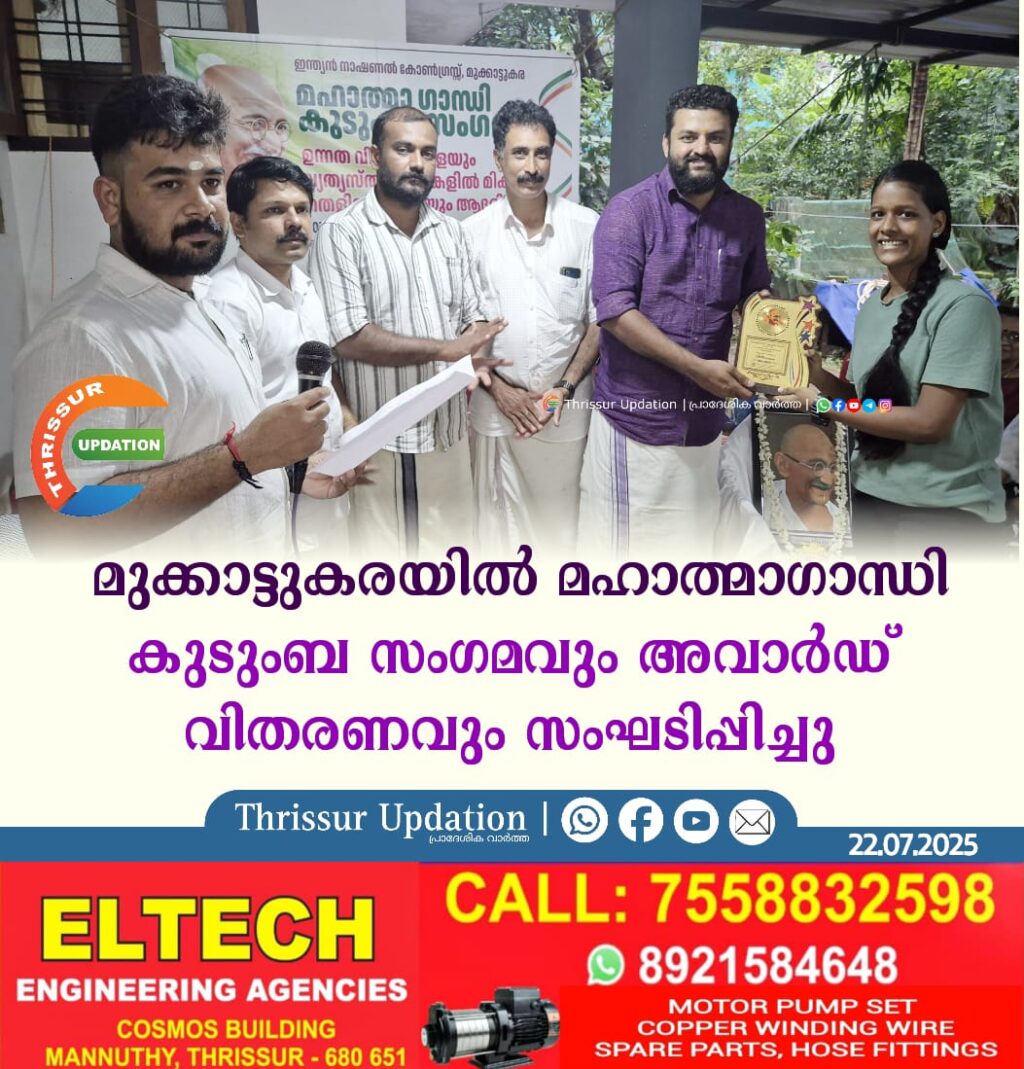 മുക്കാട്ടുകരയിൽ മഹാത്മാഗാന്ധി കുടുംബ സംഗമവും അവാർഡ് വിതരണവും സംഘടിപ്പിച്ചു.