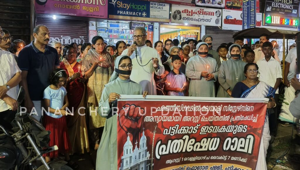 കന്യാസ്ത്രീകളെ അറസ്റ്റ് ചെയ്ത സംഭവം; പട്ടിക്കാട് സെൻറ് ഫ്രാൻസിസ് സേവിയേഴ്സ് ഫൊറോന പള്ളിയുടെ നേതൃത്വത്തിൽ പ്രതിഷേധ റാലി നടത്തി