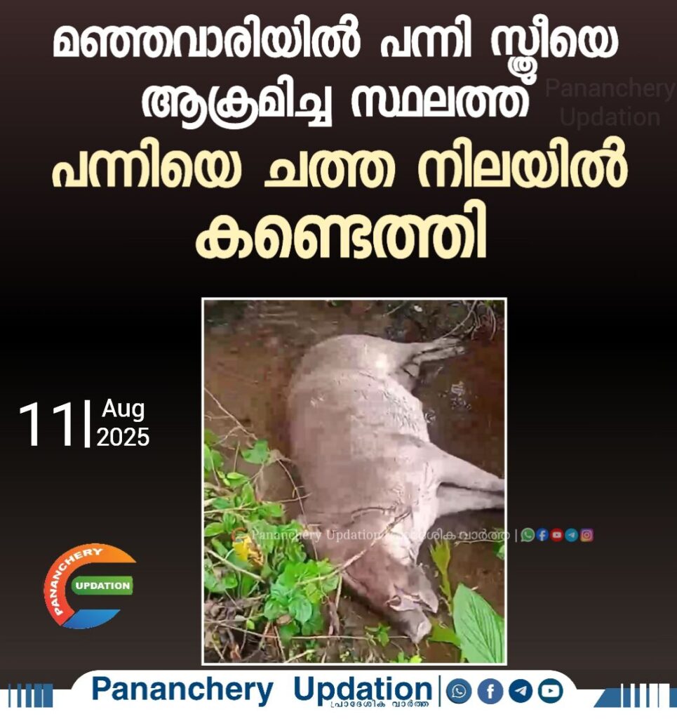 മഞ്ഞവാരിയിൽ പന്നി സ്ത്രീയെ ആക്രമിച്ച സ്ഥലത്ത് പന്നിയെ ചത്ത നിലയിൽ കണ്ടെത്തി