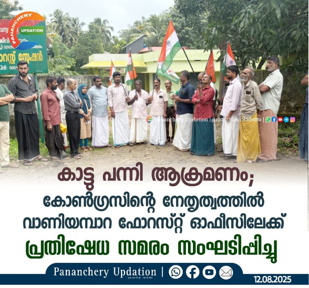 കാട്ടു പന്നി ആക്രമണം; കോൺഗ്രസിൻറെ നേതൃത്വത്തിൽ വാണിയമ്പാറ ഫോറസ്റ്റ് ഓഫീസിലേക്ക് പ്രതിഷേധ സമരം സംഘടിപ്പിച്ചു