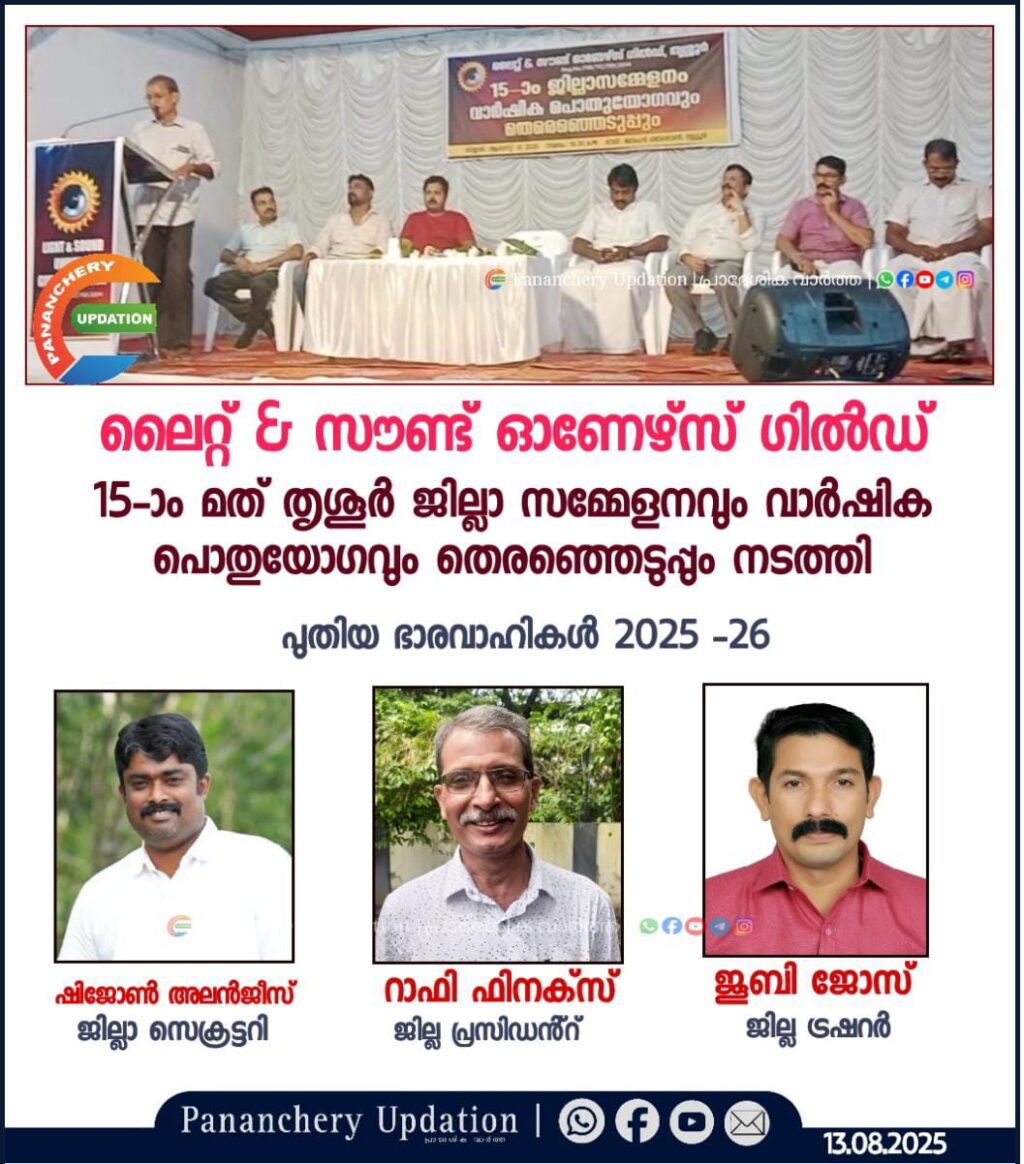 ലൈറ്റ് & സൗണ്ട് ഓണേഴ്സ് ഗിൽഡ് 15-ാംതൃശൂർ ജില്ലാ സമ്മേളനവും വാർഷിക പൊതുയോഗവും തെരഞ്ഞെടുപ്പും നടത്തി.