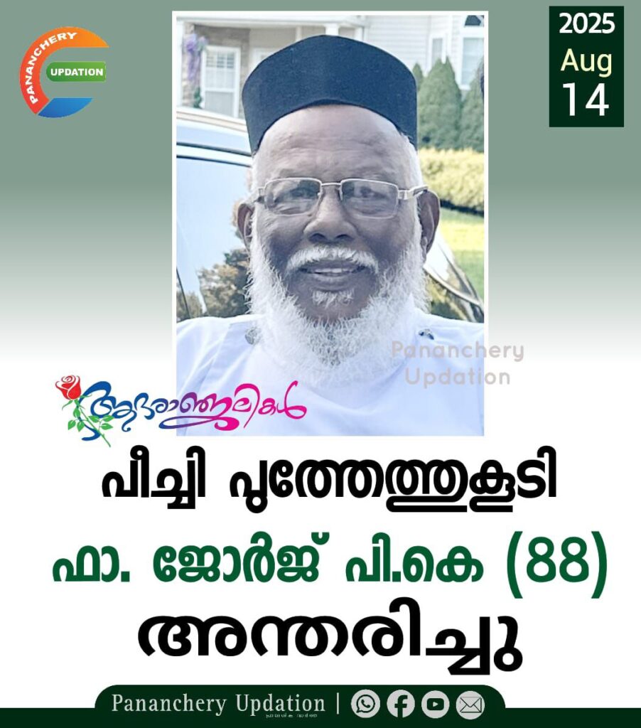 മലങ്കര ഓർത്തഡോക്സ് സഭയിലെ മുതിർന്ന വൈദികനായ പുത്തേത്തുകൂടി ഫാ. ജോർജ് പി. കെ (88) അമേരിക്കയിൽ വെച്ച് അന്തരിച്ചു. സംസ്കാരം പിന്നീട് കരിപ്പക്കുന്ന് ഓർത്തഡോക്സ് പള്ളി സെമിത്തേരിയിൽ. ഭാര്യ: പരേതയായ ചിന്നമ്മ. മക്കൾ: ജാൻസി, കുരിയാക്കോസ് എൽദോ, ജോൺ പി ജോർജ്. മരുമക്കൾ: ജോയ് മേക്കാട്ട്, ഡിംപിൾ, സോനു.