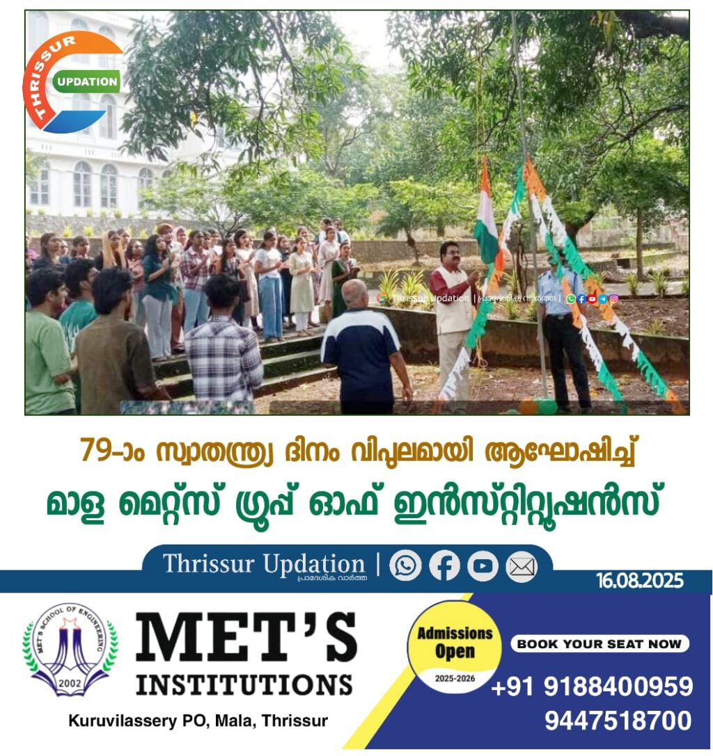 79-ാം സ്വാതന്ത്ര്യ ദിനം വിപുലമായി ആഘോഷിച്ച് മാള മെറ്റ്സ് ഗ്രൂപ്പ് ഓഫ് ഇൻസ്റ്റിറ്റ്യൂഷൻസ്