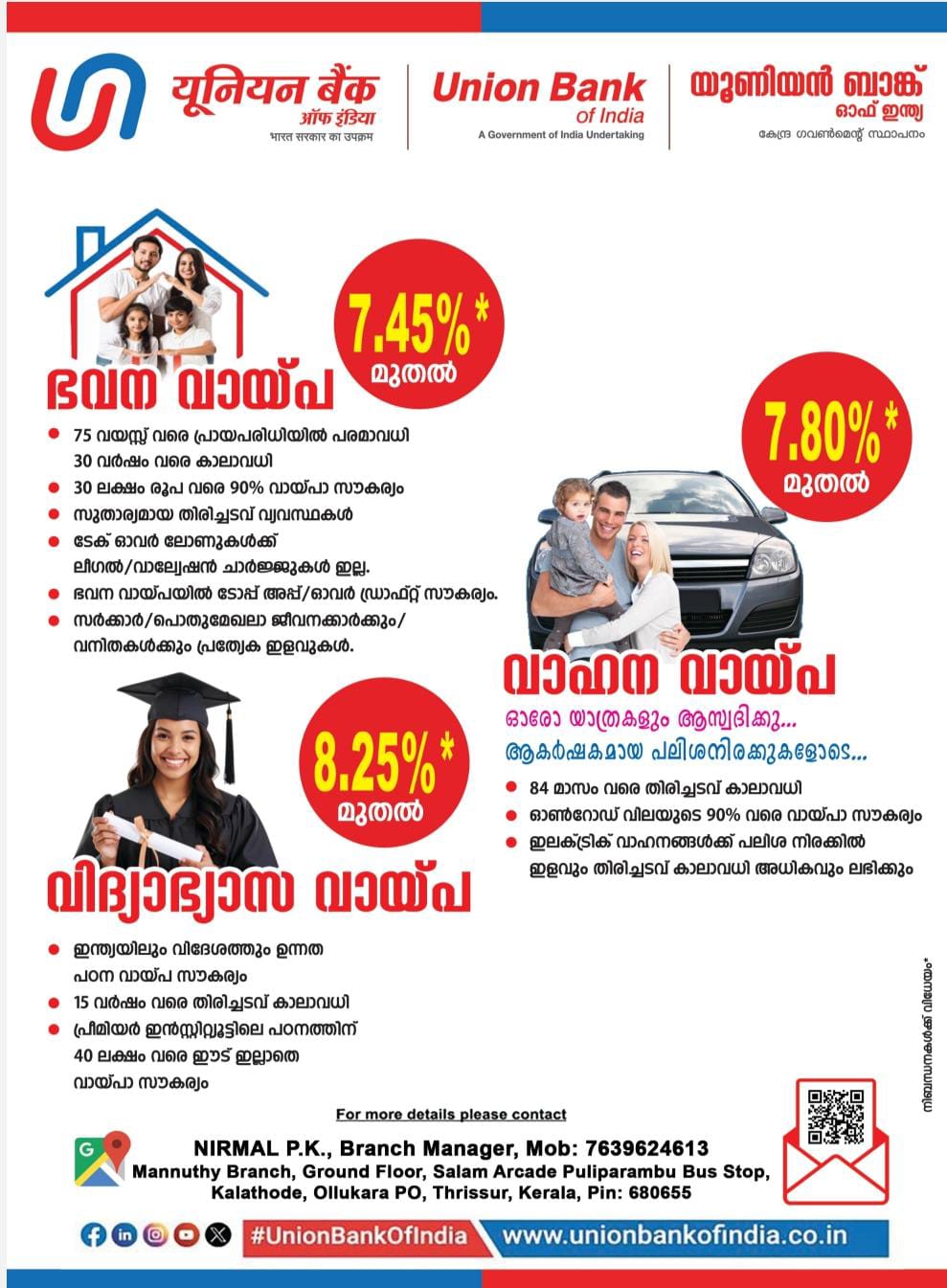 📍Mannuthy Branch, Ground Floor, Salam Arcade Puliparambu Bus Stop, Kalathode, Ollukara PO, Thrissur, Kerala, Pin: 680655